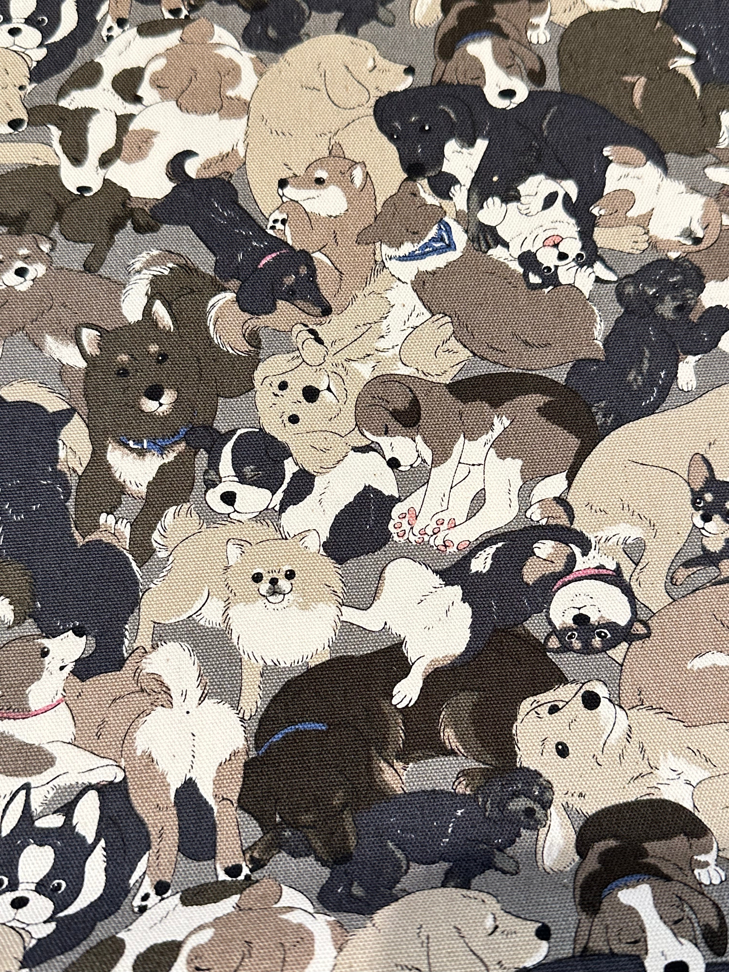 いろいろなわんこ大集合柄の、オックス生地。