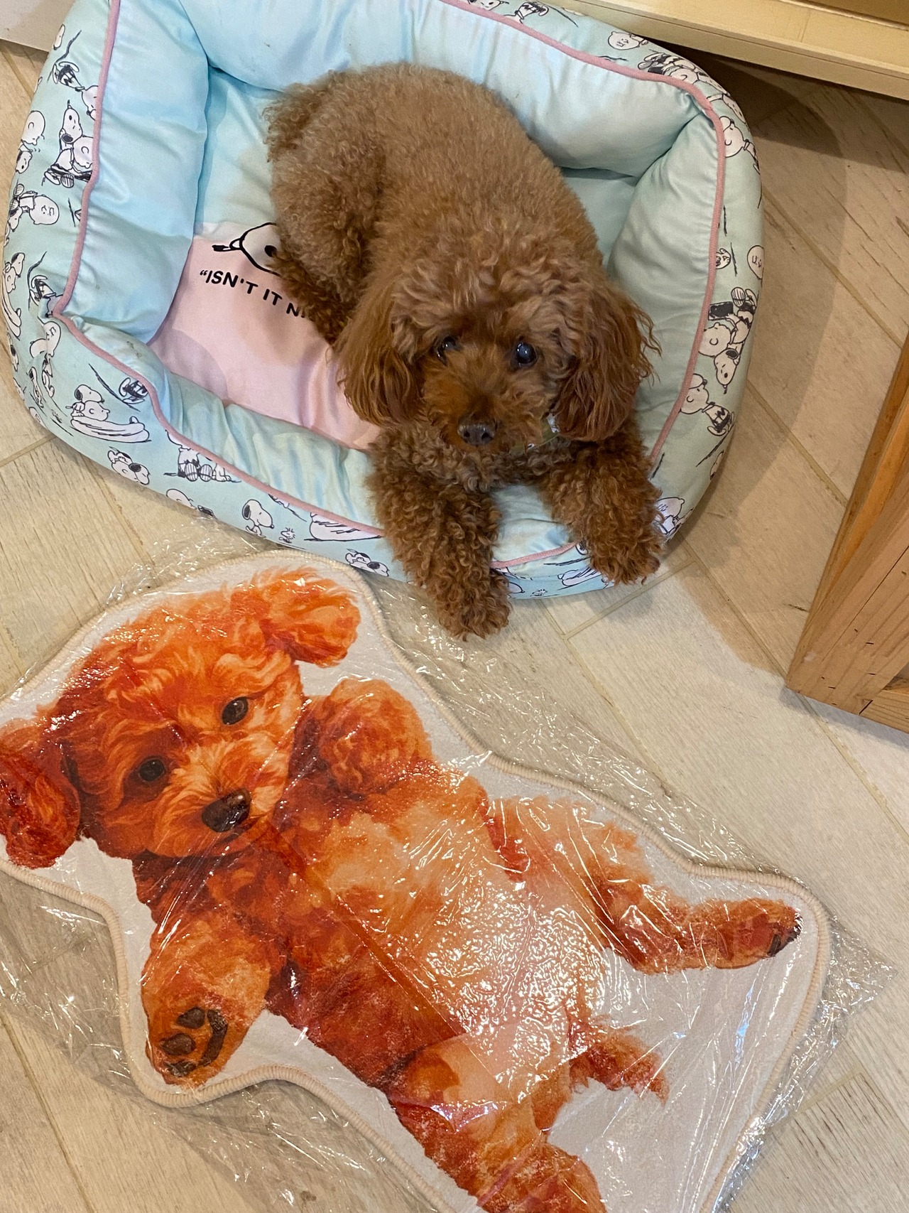 愛くるしい犬たちが描かれたもこもこ起毛マットです。