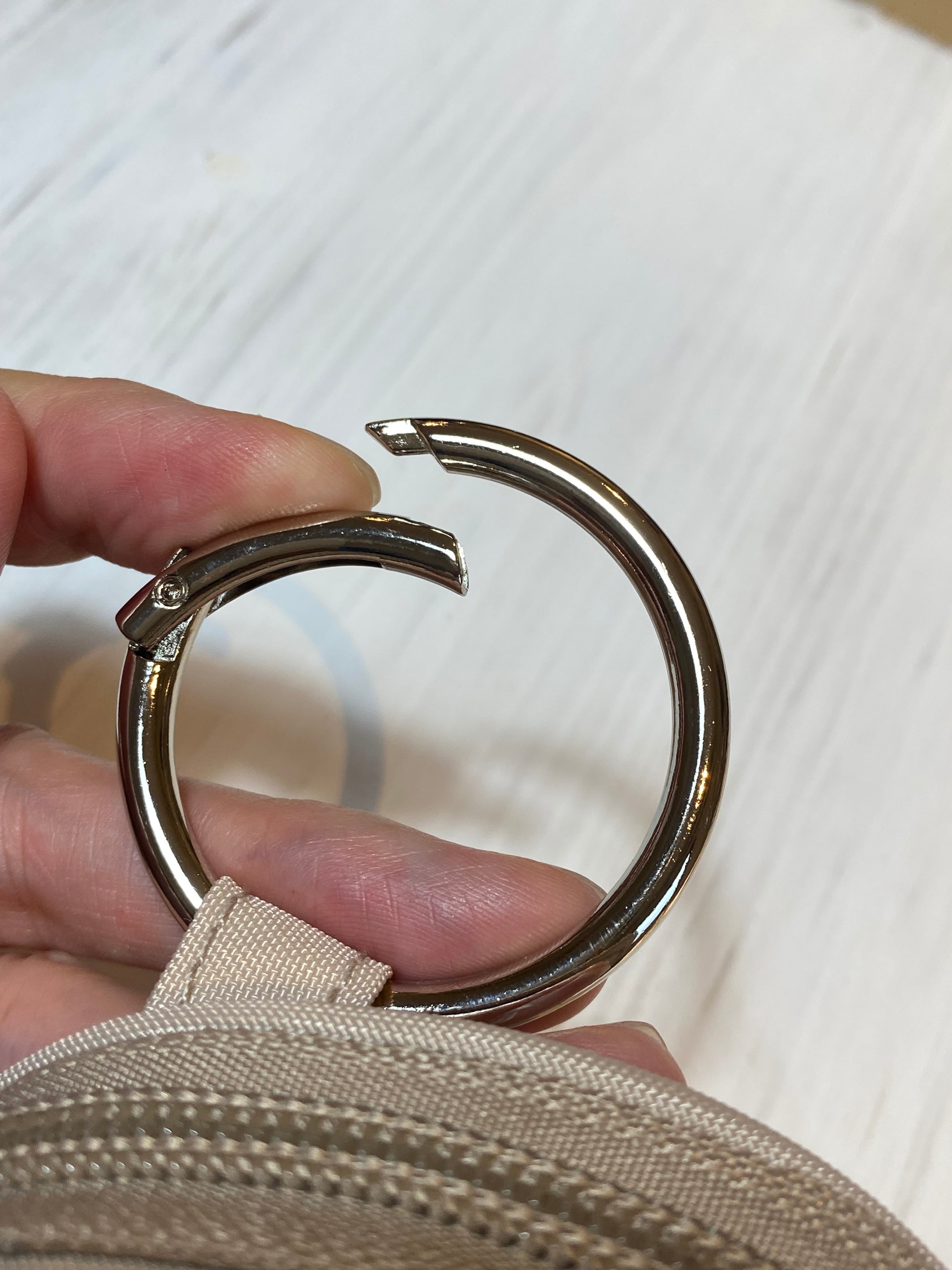 コインケースやチャームとして付けられる、丸型カラビナ付き。