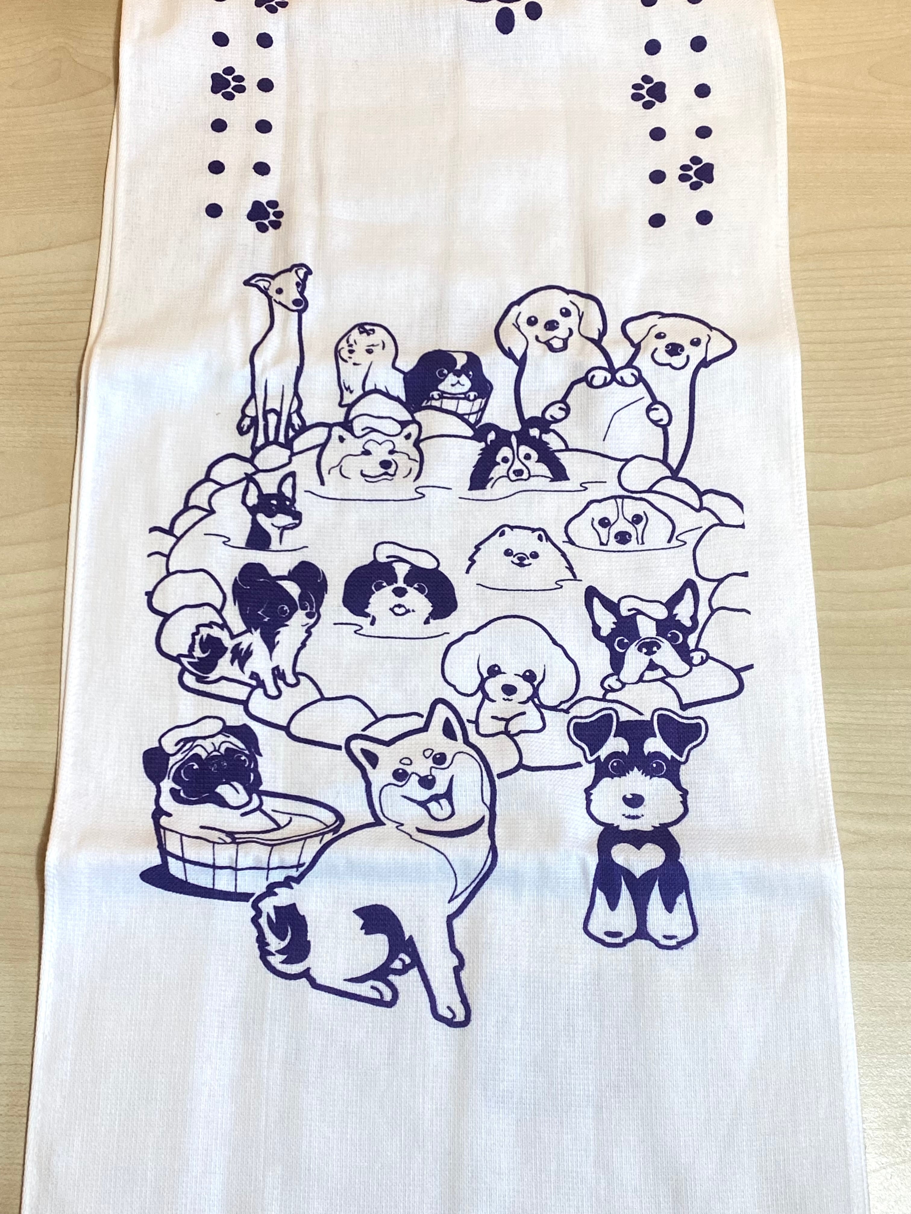 わんこ大集合 温泉足湯タオル 白