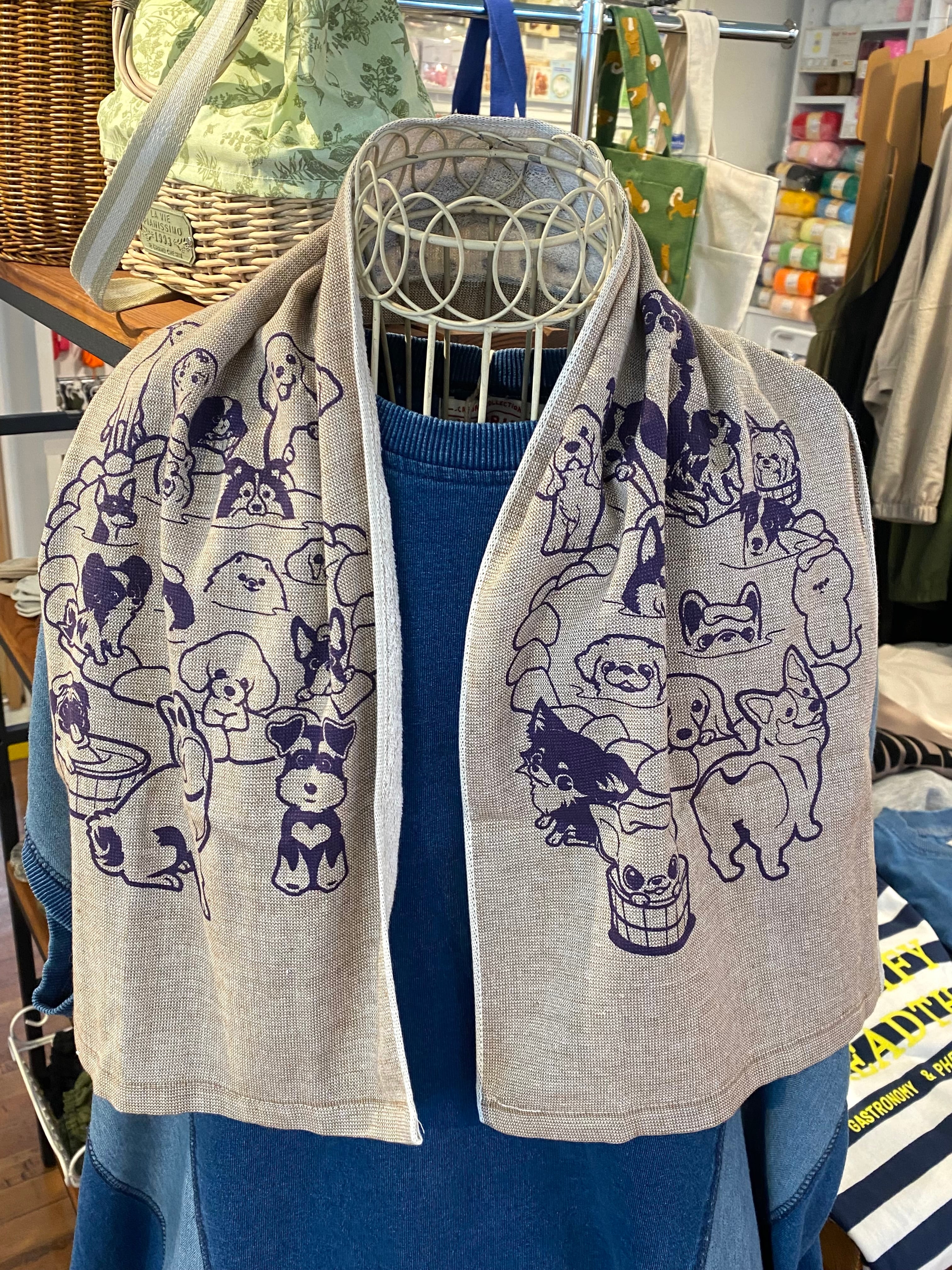 首からかけると、両側に違うわんこたちのイラストが見えてかわいいです。