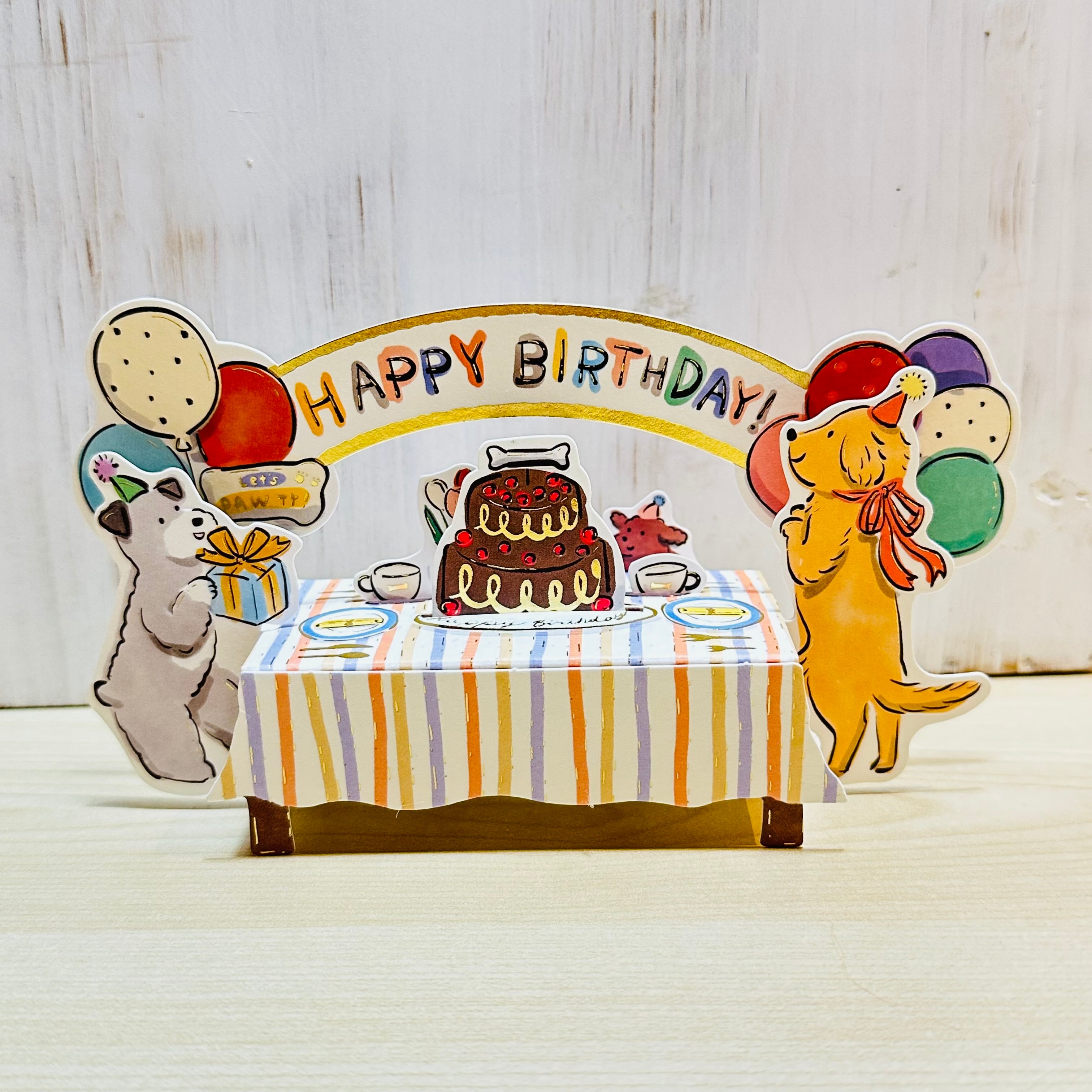 わんこたちがテーブルを囲んでバースデーのお祝い!
