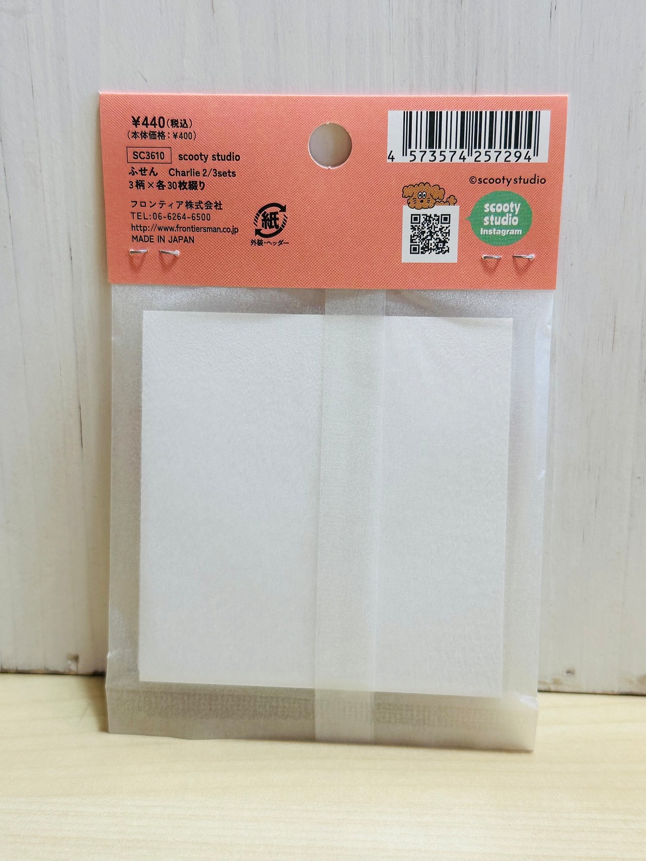 韓国初の文具雑貨ブランド「scooty studio」の、とぼけた表情がかわいいトイプードルのチャーリーのシリーズの付箋。