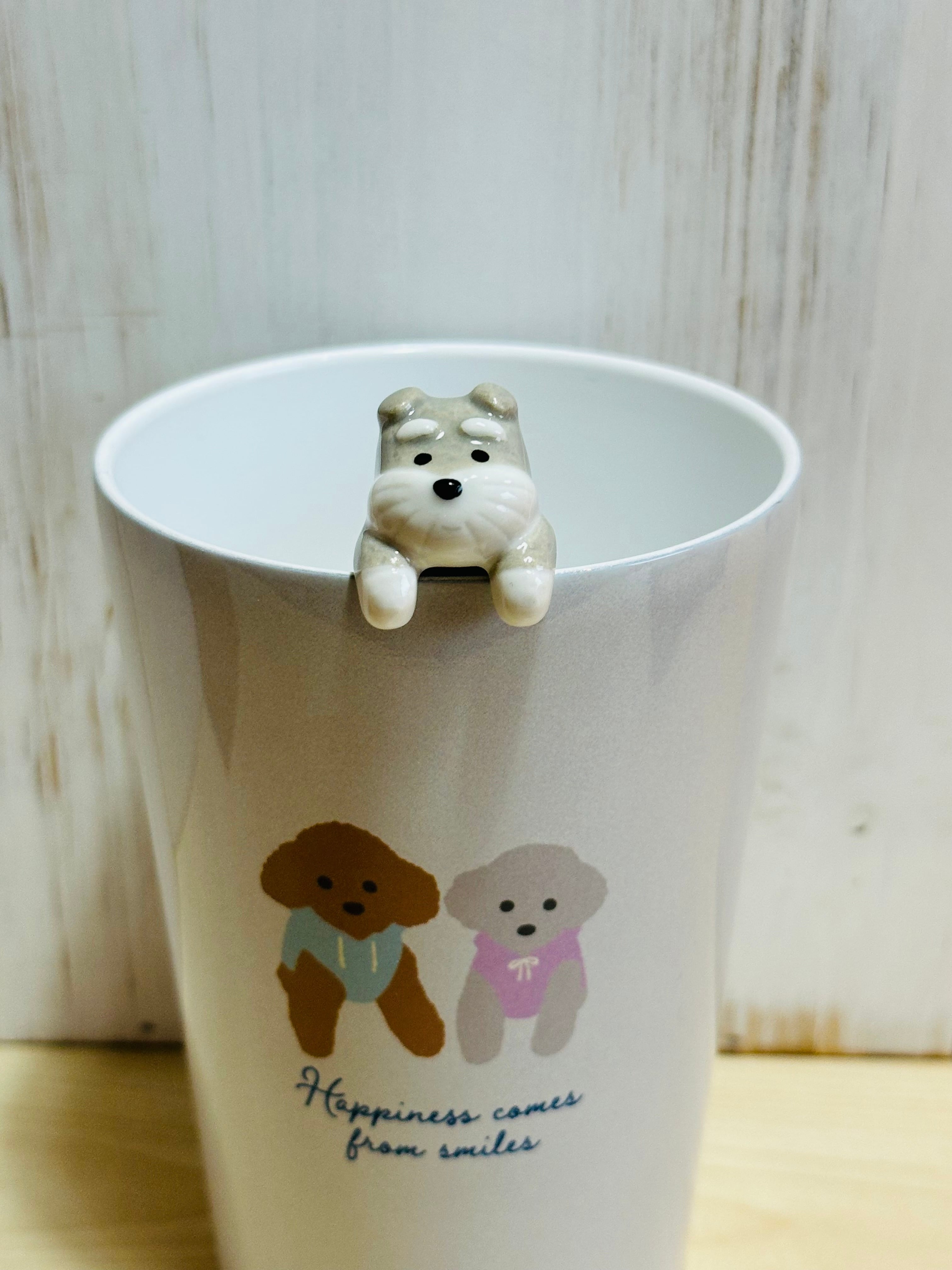 コップのふちにちょこんとぶら下がったわんこがかわいいスプーン。