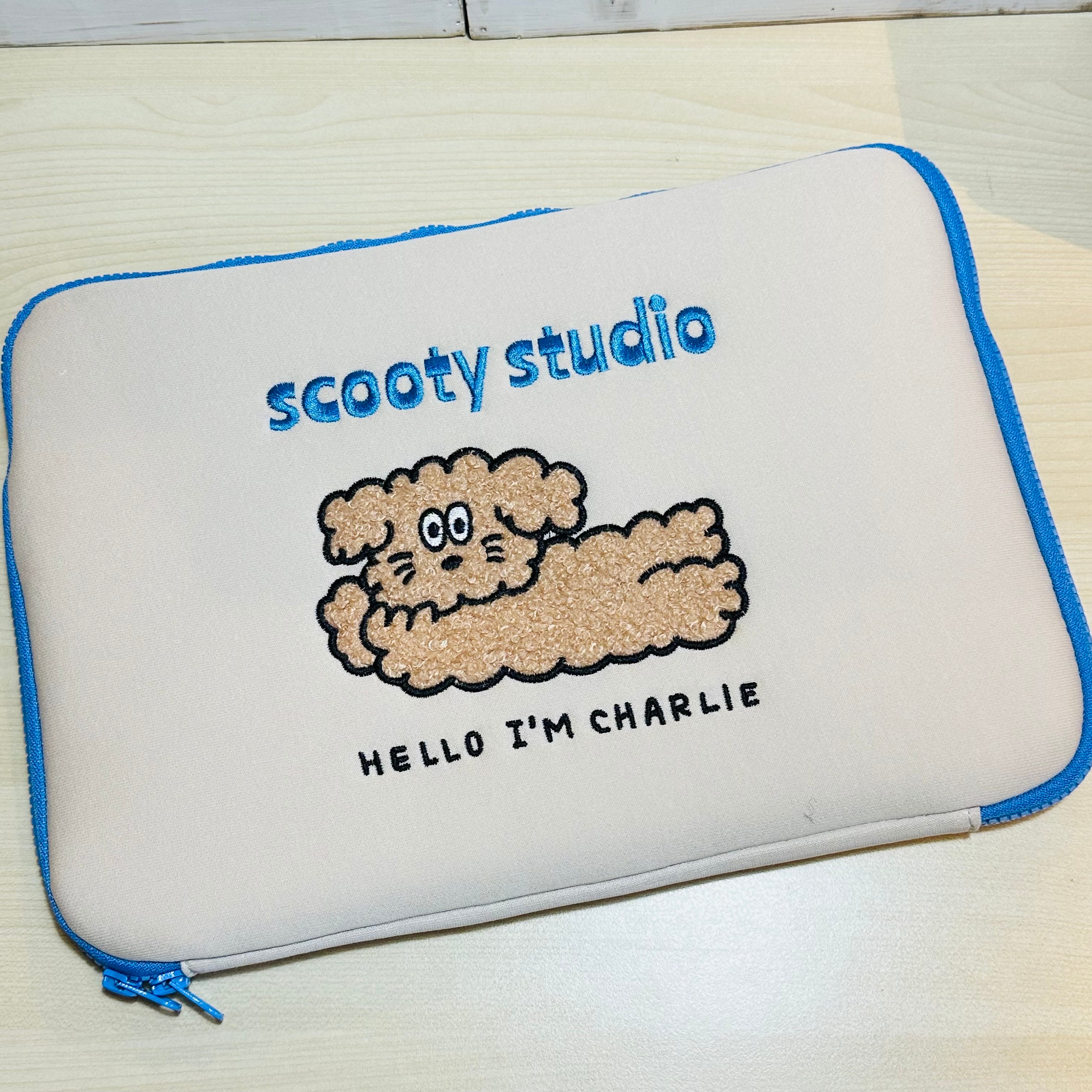 の、とぼけた表情がかわいいチャーリーのラップトップケース。