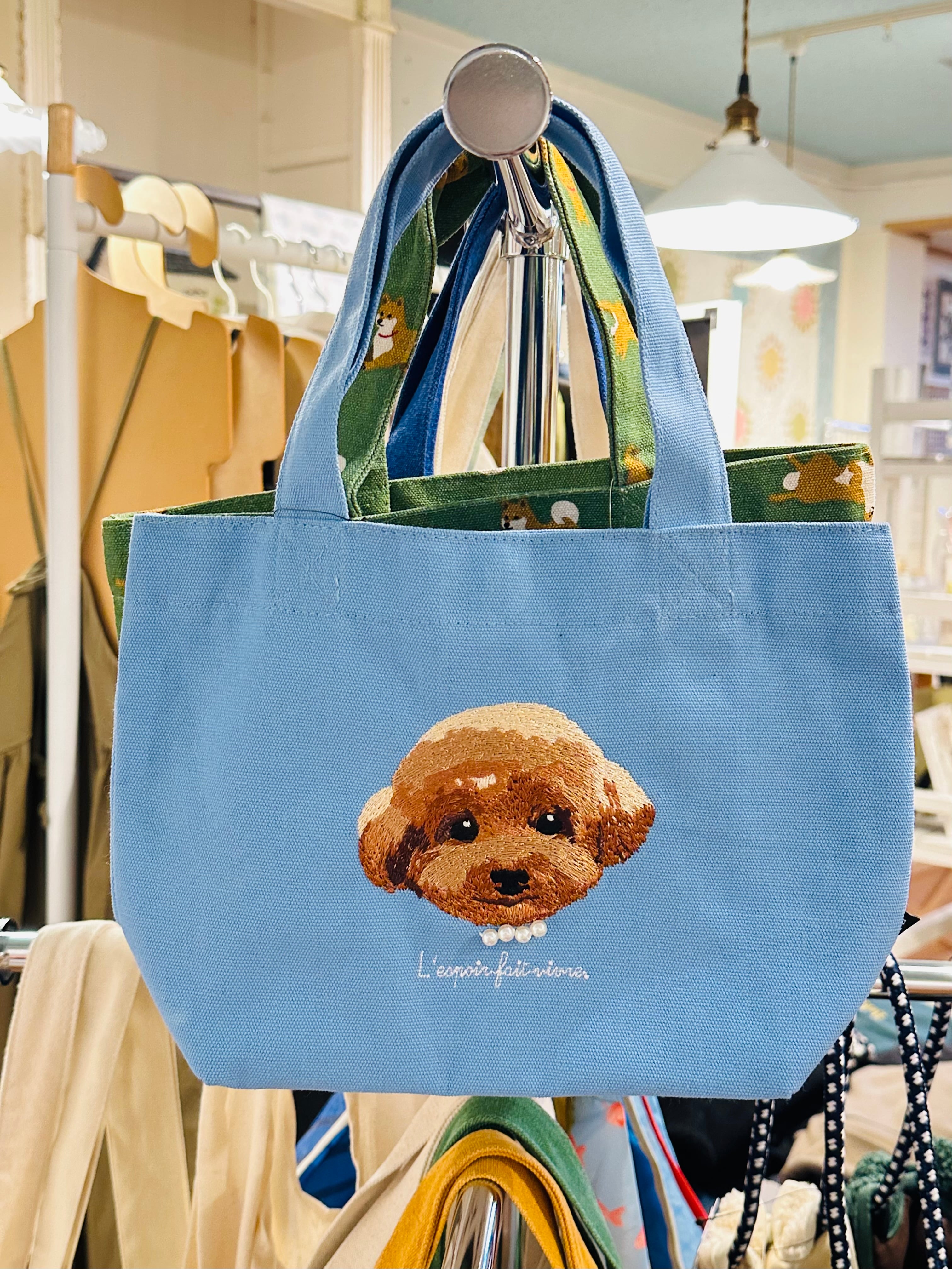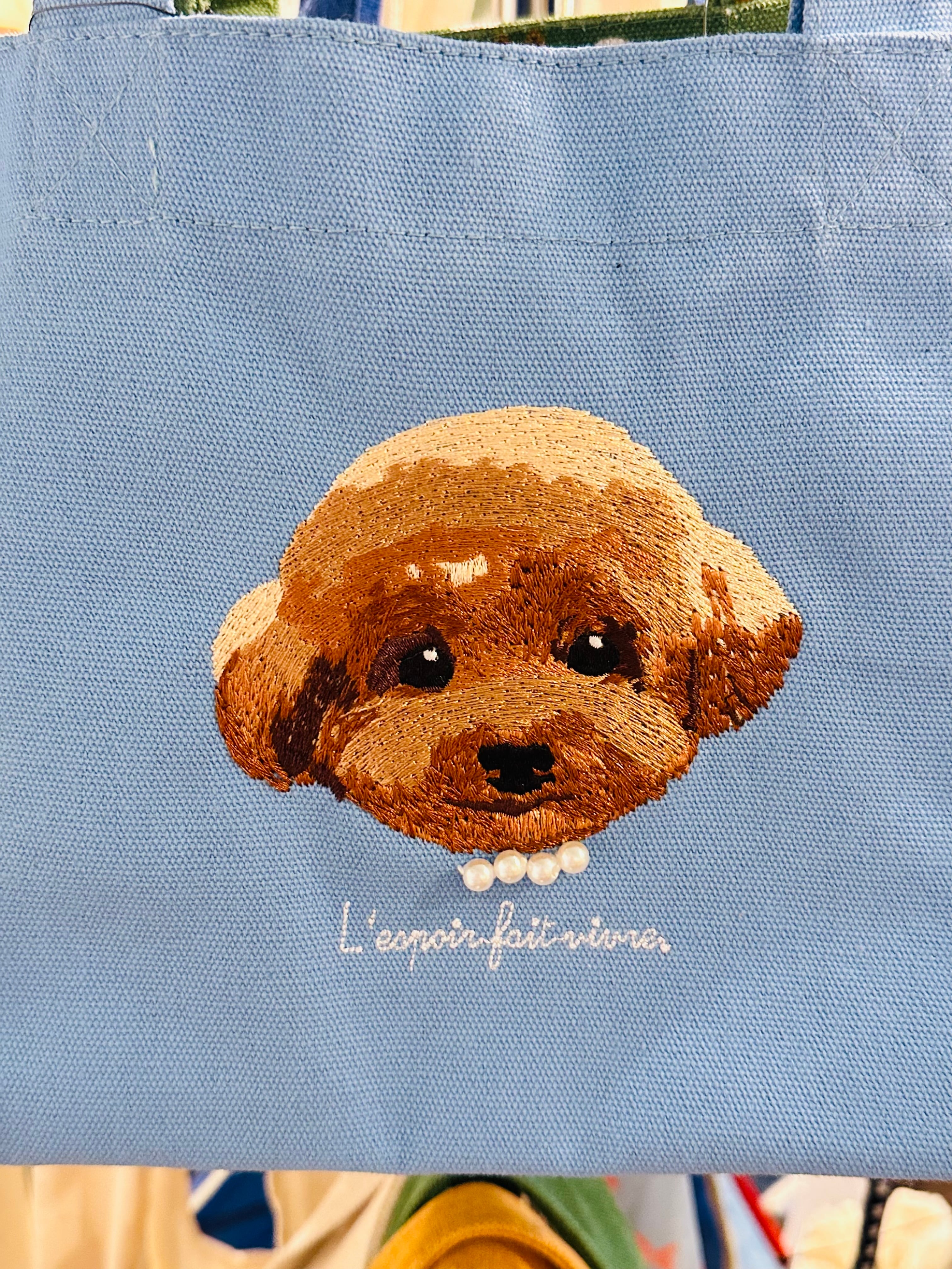 可愛い刺繍のトイプードルにワンポイントでパールビーズがついたアトリエ・ポピンシリーズのプチバッグ。