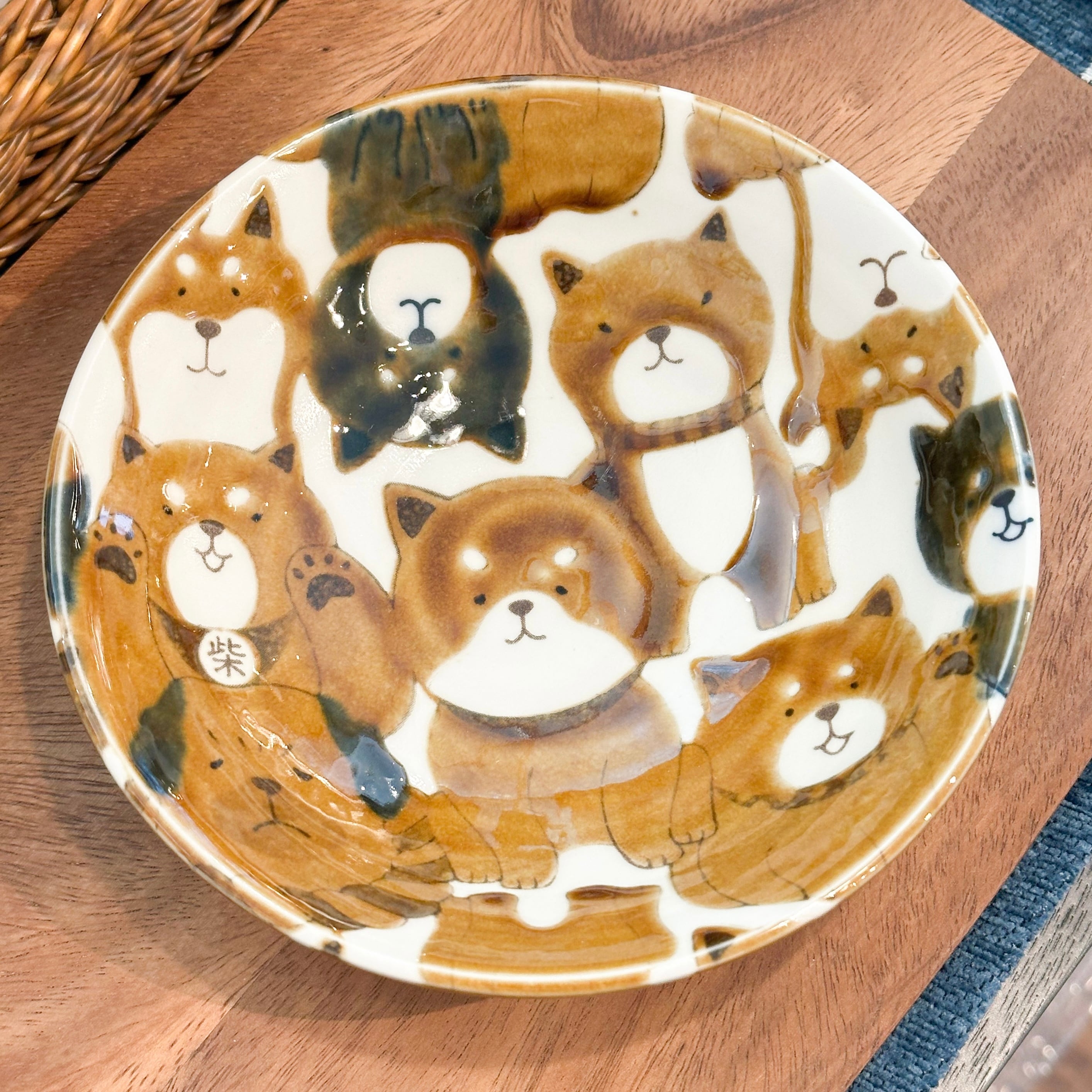 まんまる顔の犬たちがかわいい『わんわん』シリーズは、柴犬たちが大胆に描かれた食器。