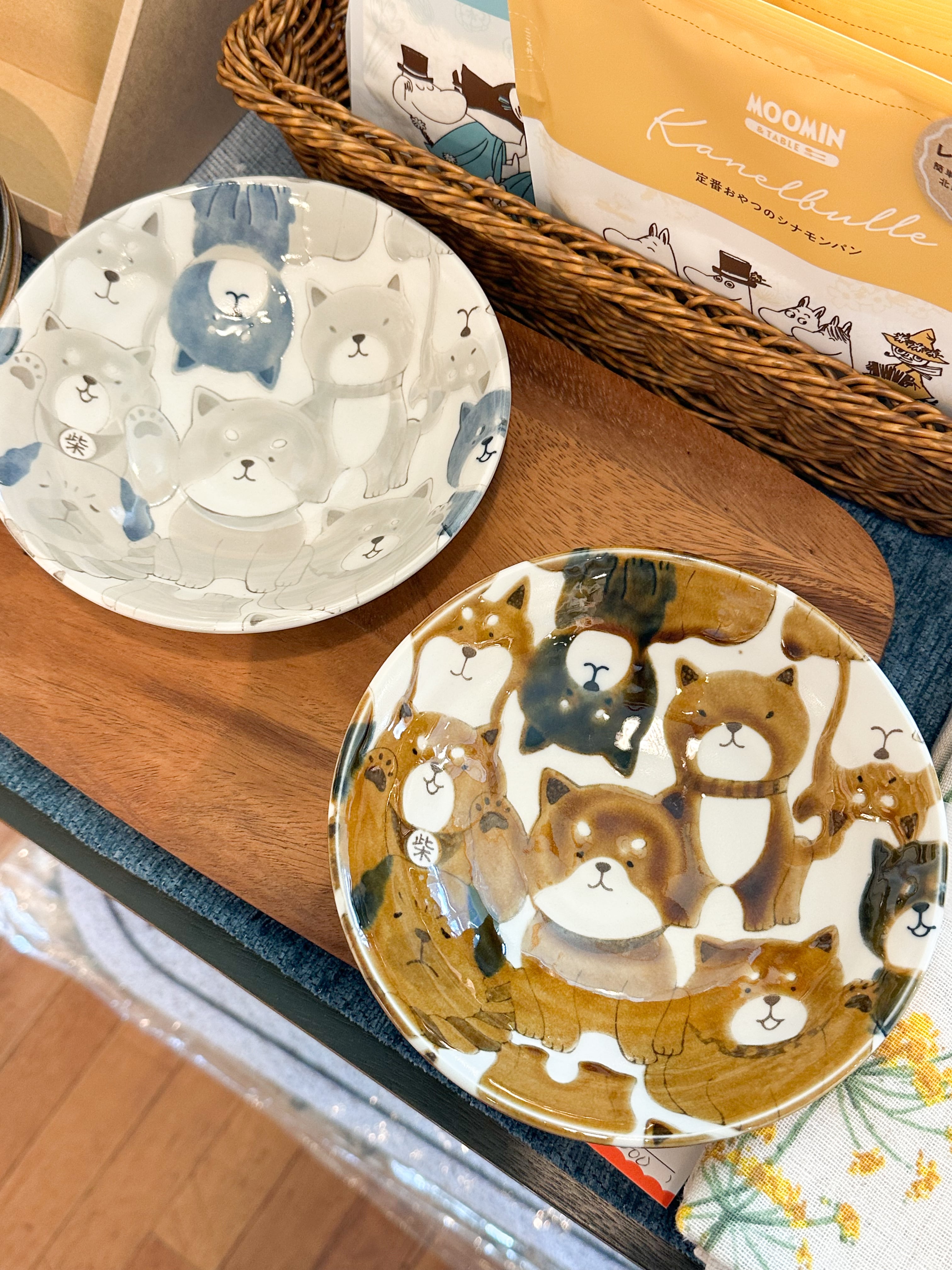まんまる顔の犬たちがかわいい『わんわん』シリーズは、柴犬たちが大胆に描かれた食器。