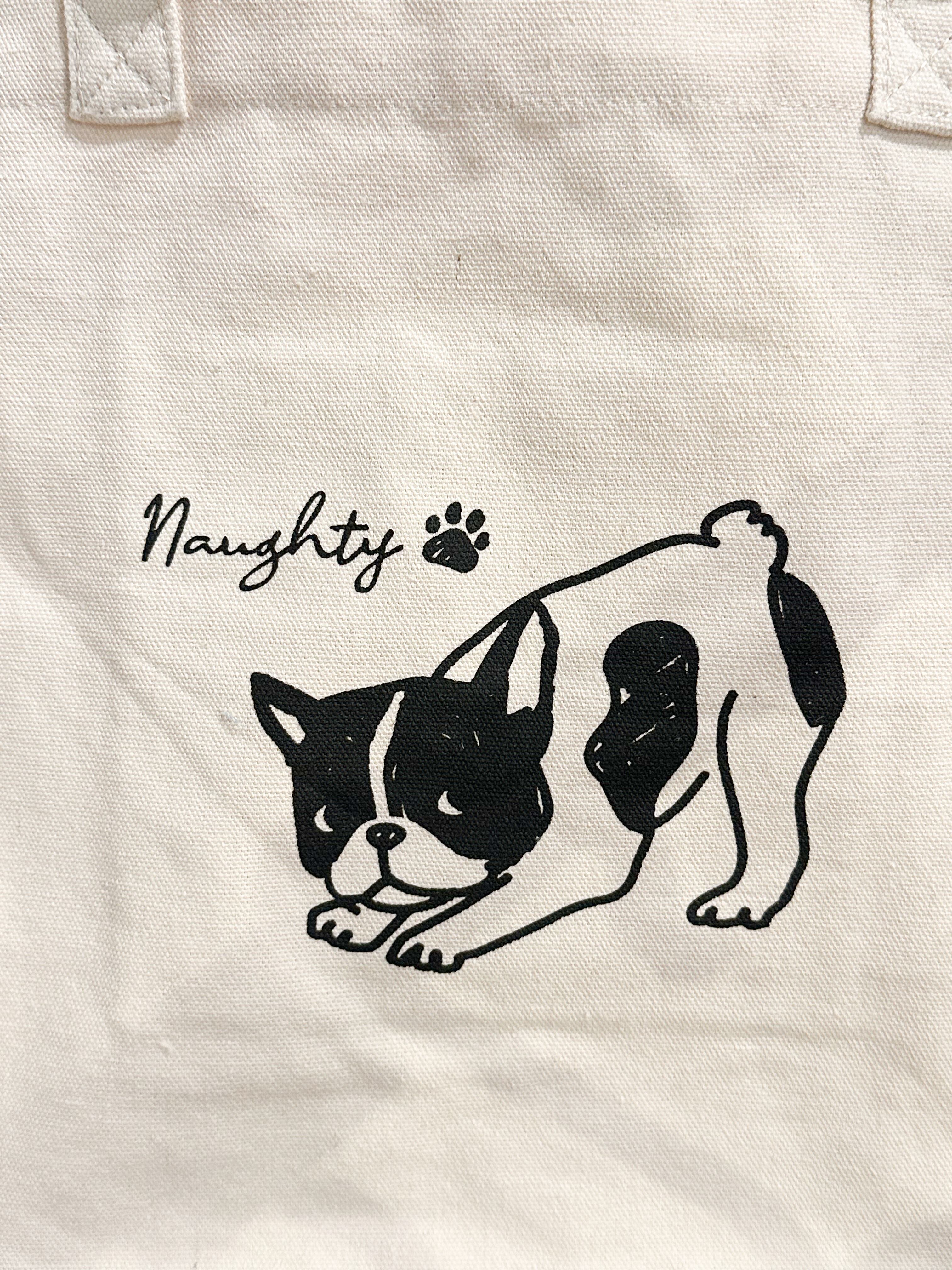 フレブルがかわいいキャンバス地の横型トート。リーズナブルなお値段ですが、マチたっぷりで沢山入るサイズ。