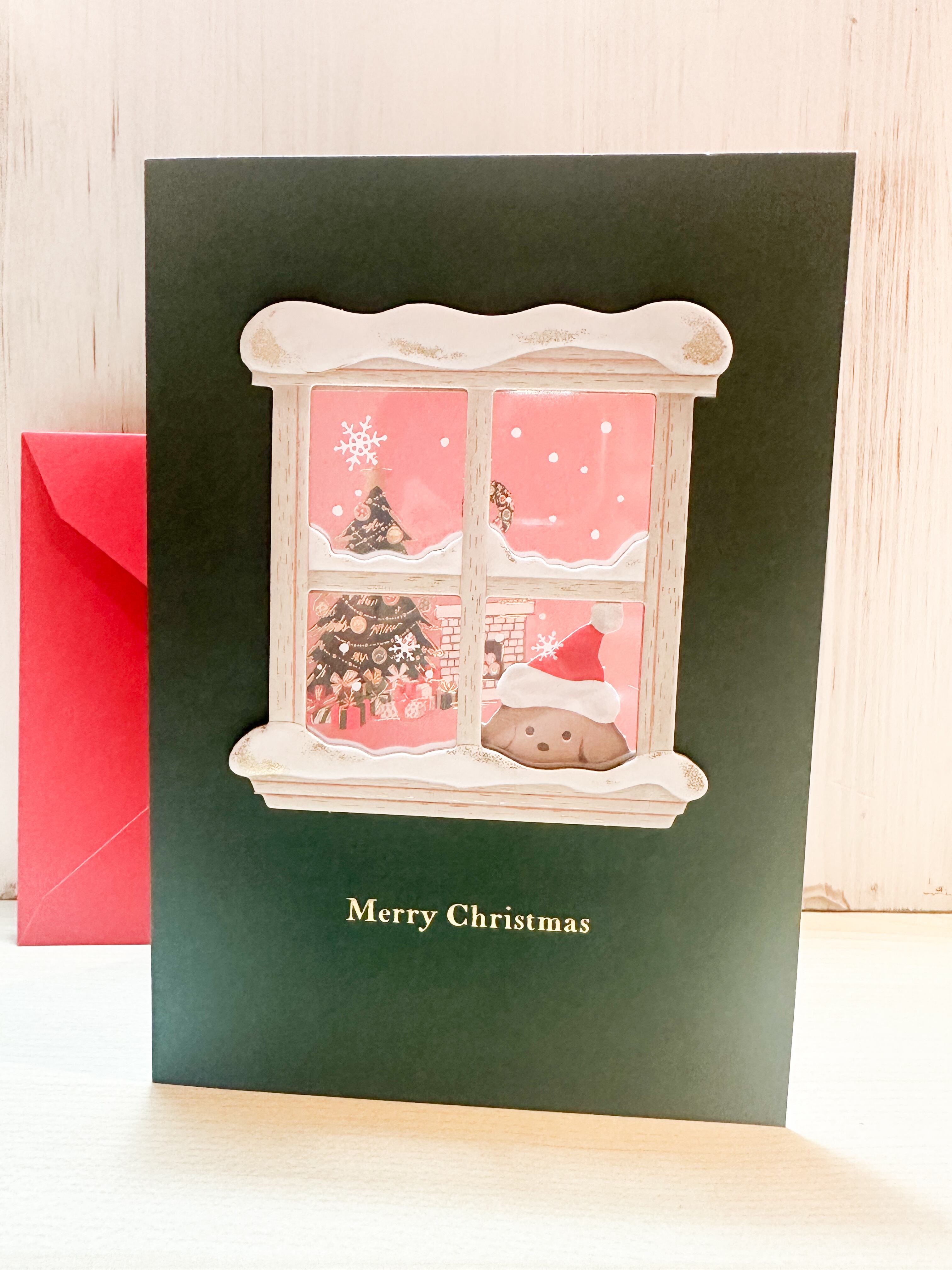 窓辺の犬 クリスマスカード