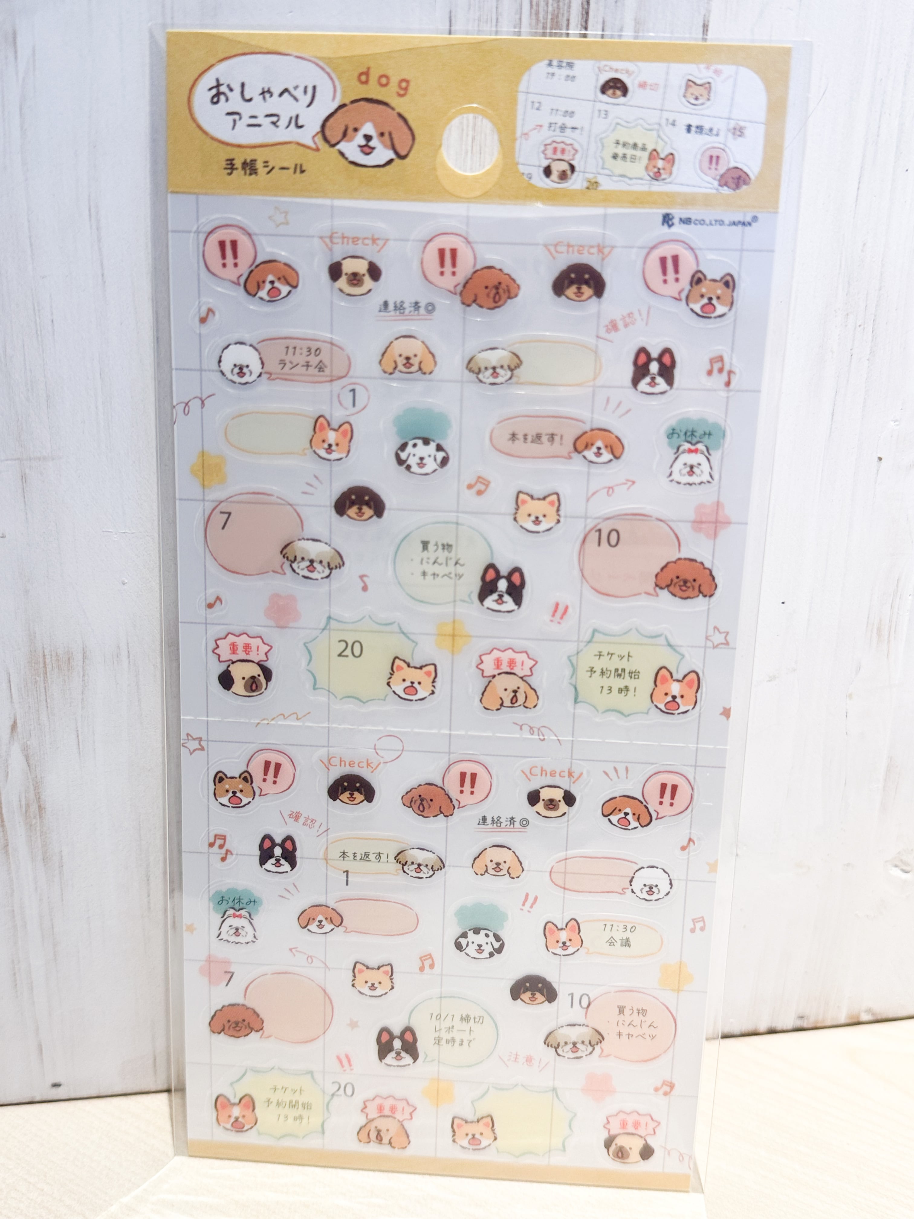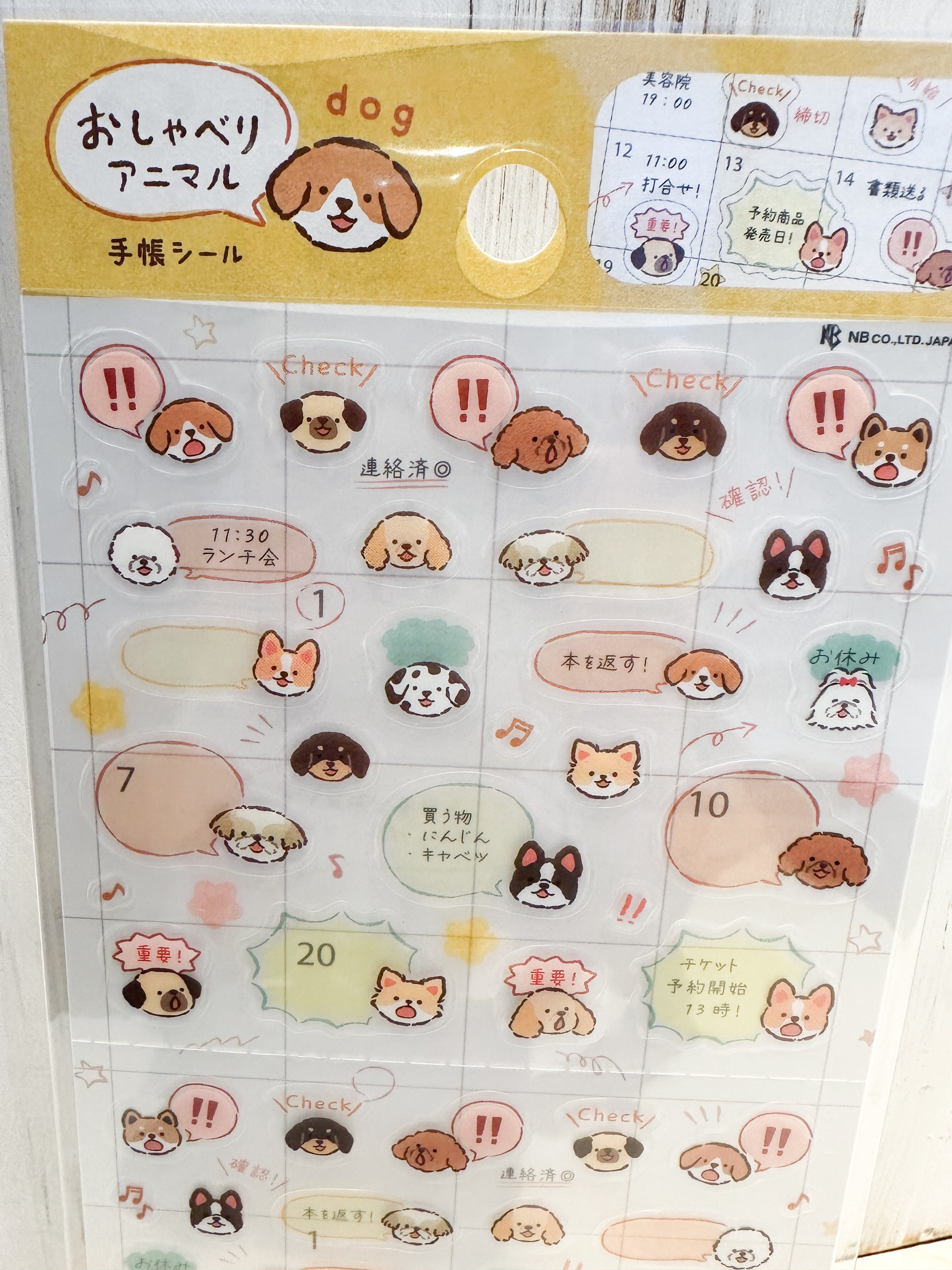 わんこたちが予定やメモについておしゃべりしているデザインの手帳シール。