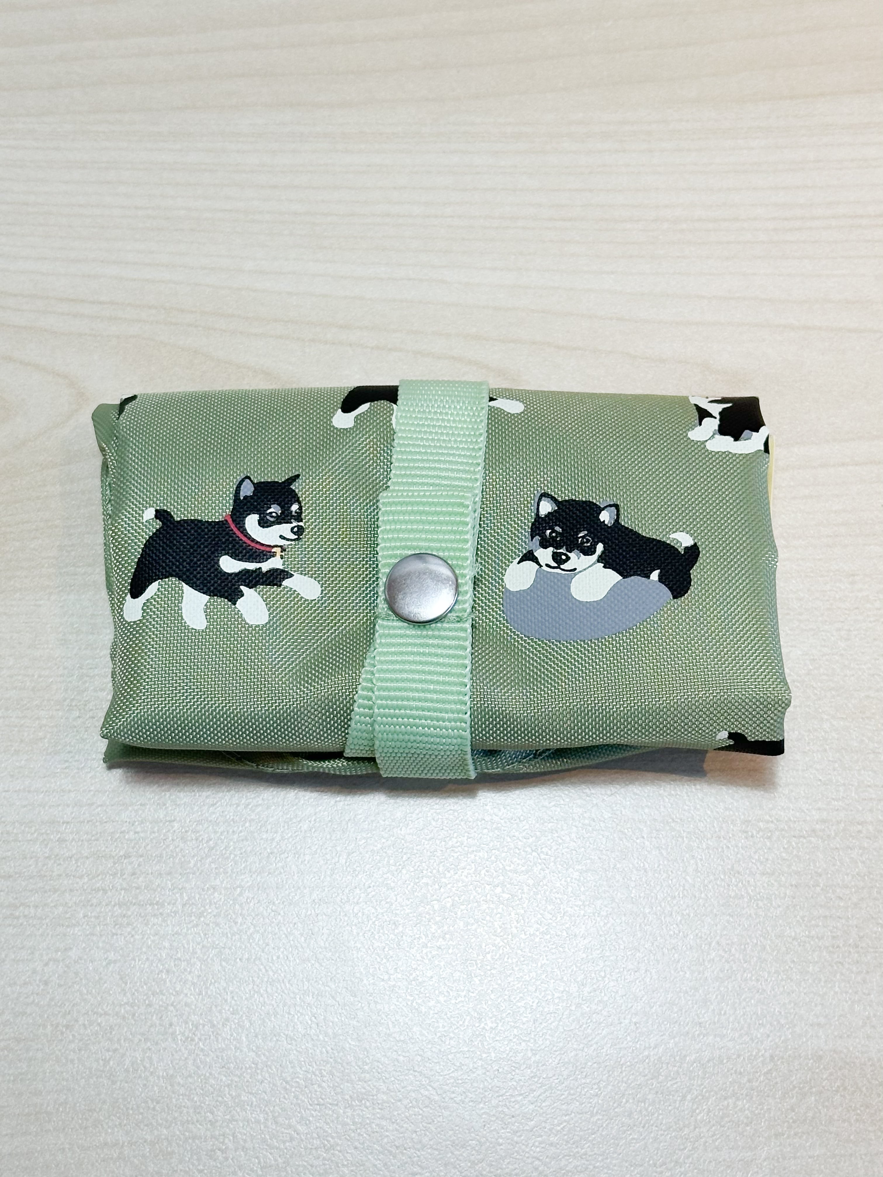 元気いっぱい、わんぱくな黒柴くんの柄がかわいい、便利な小さめサイズのエコバッグ。