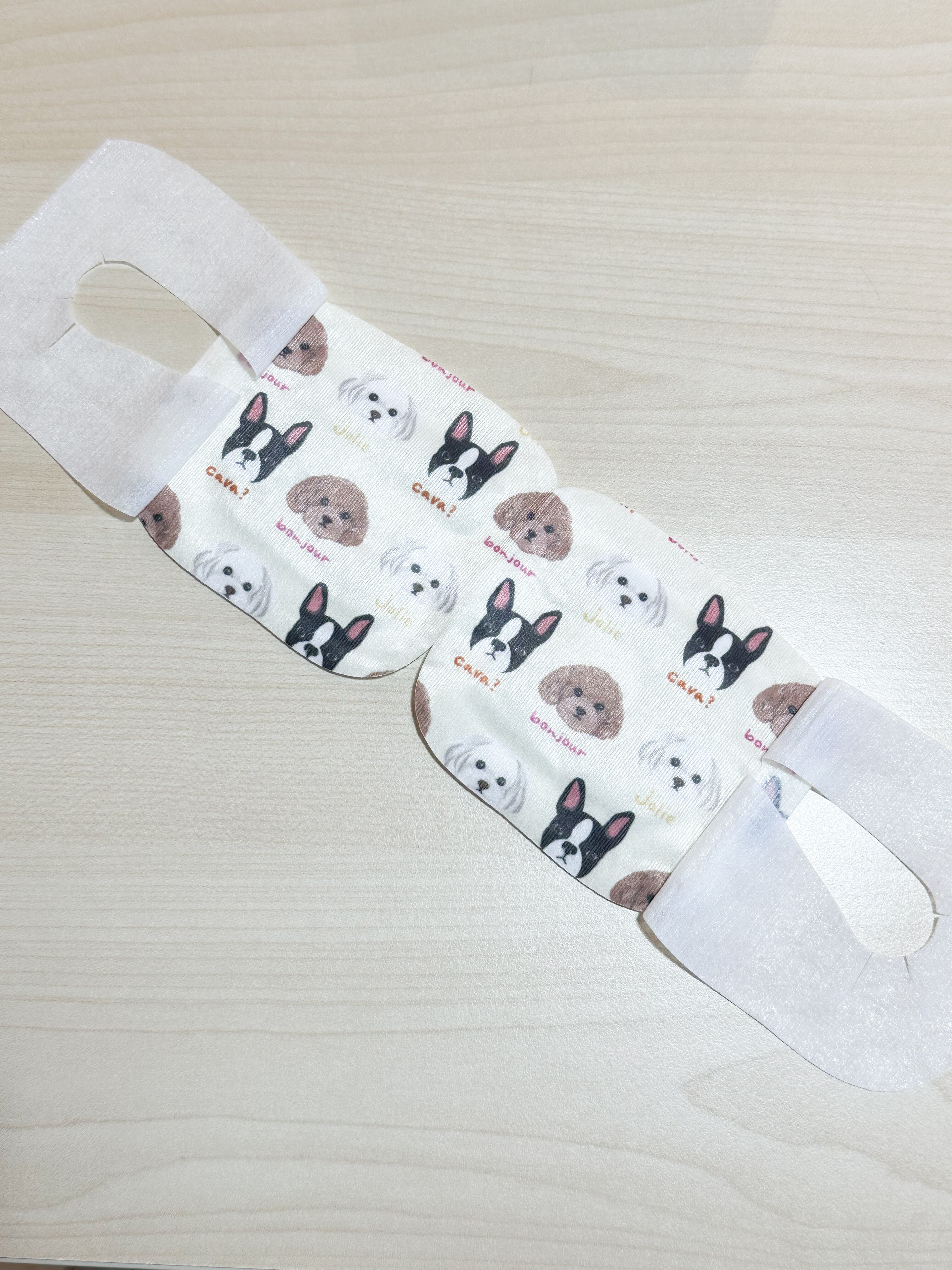 マルチーズ、トイプードル、フレンチブルドッグの柄がかわいい、無香料のホットアイマスク。