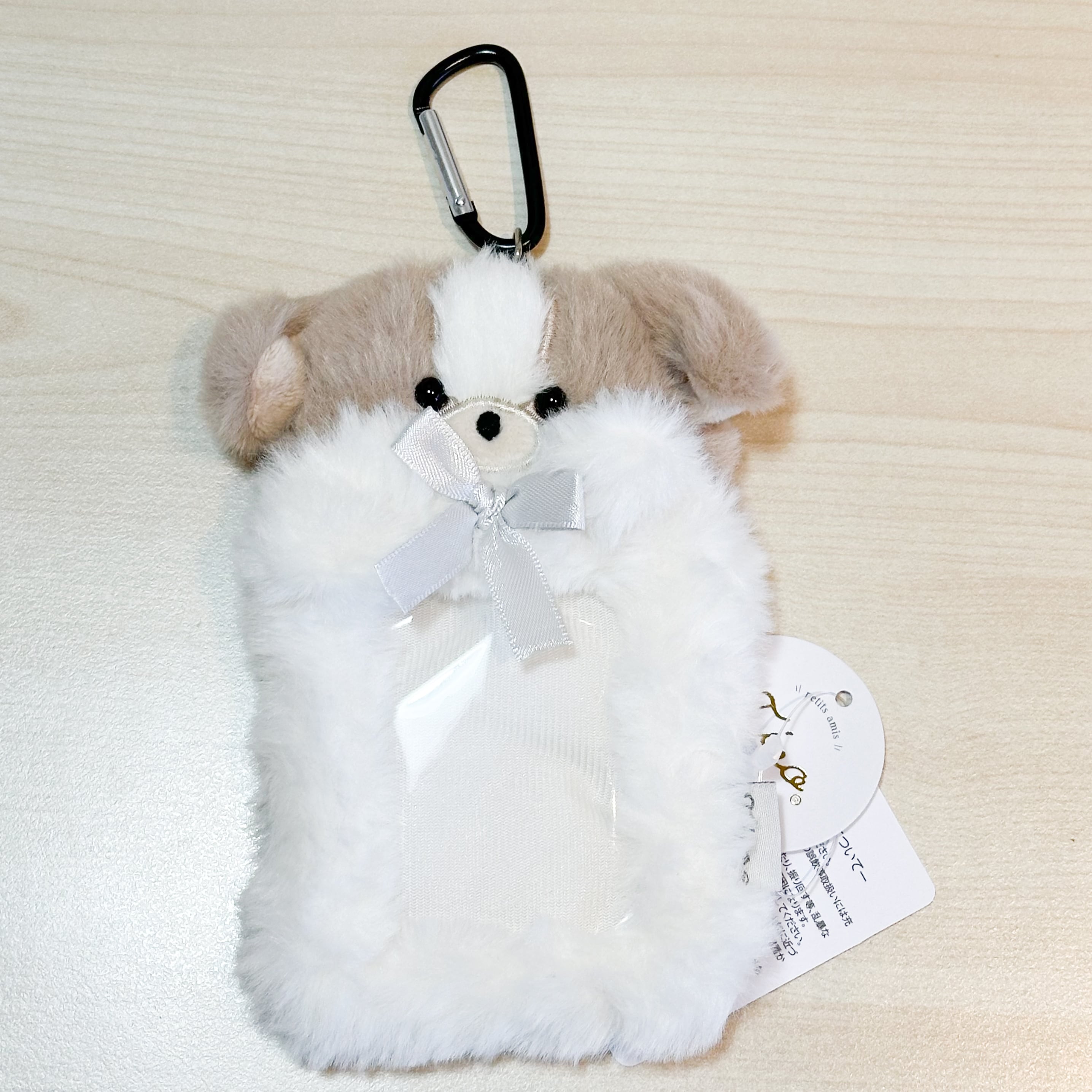 ふわふわのシーズーがかわいい、カラビナ付き、リール付きカードケース。
