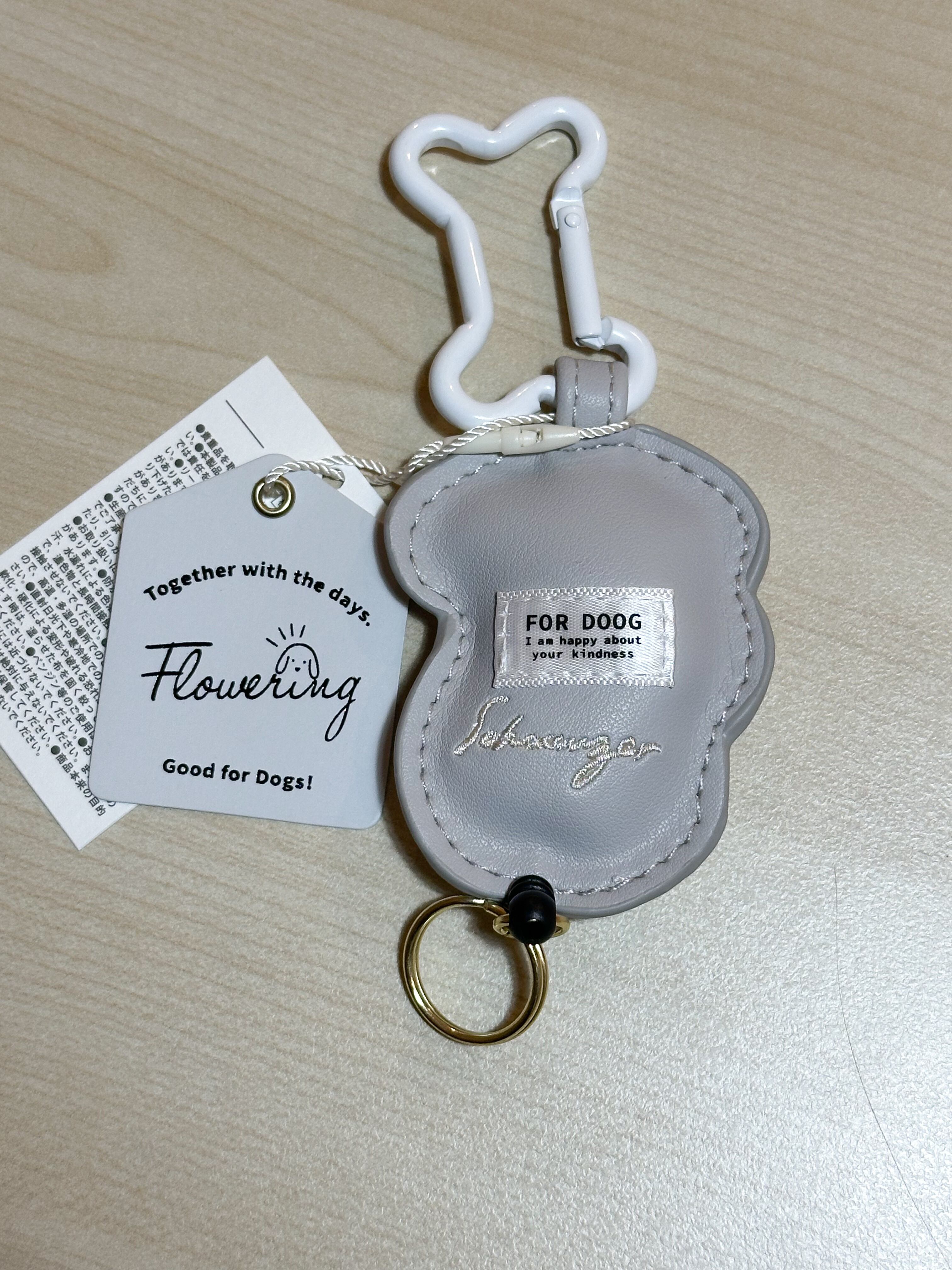 綿入りの合成皮革に、わんこのリアルな刺繍がかわいい骨型カラビナ付きリールチャーム。