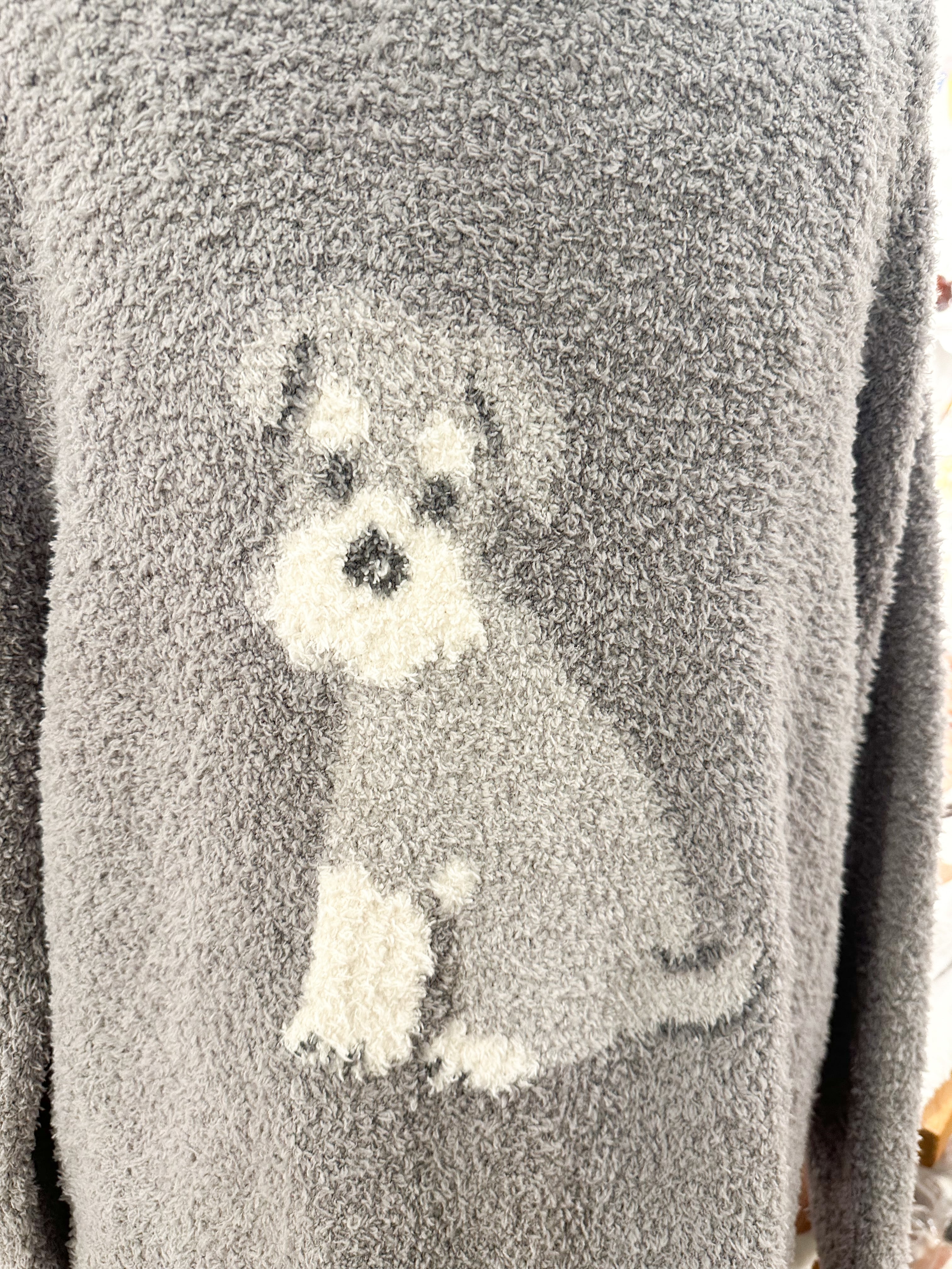 シュナウザーがかわいい、お部屋のリラックスタイムにぴったりの、ふわふわモールの肌触りの良いワンピース。