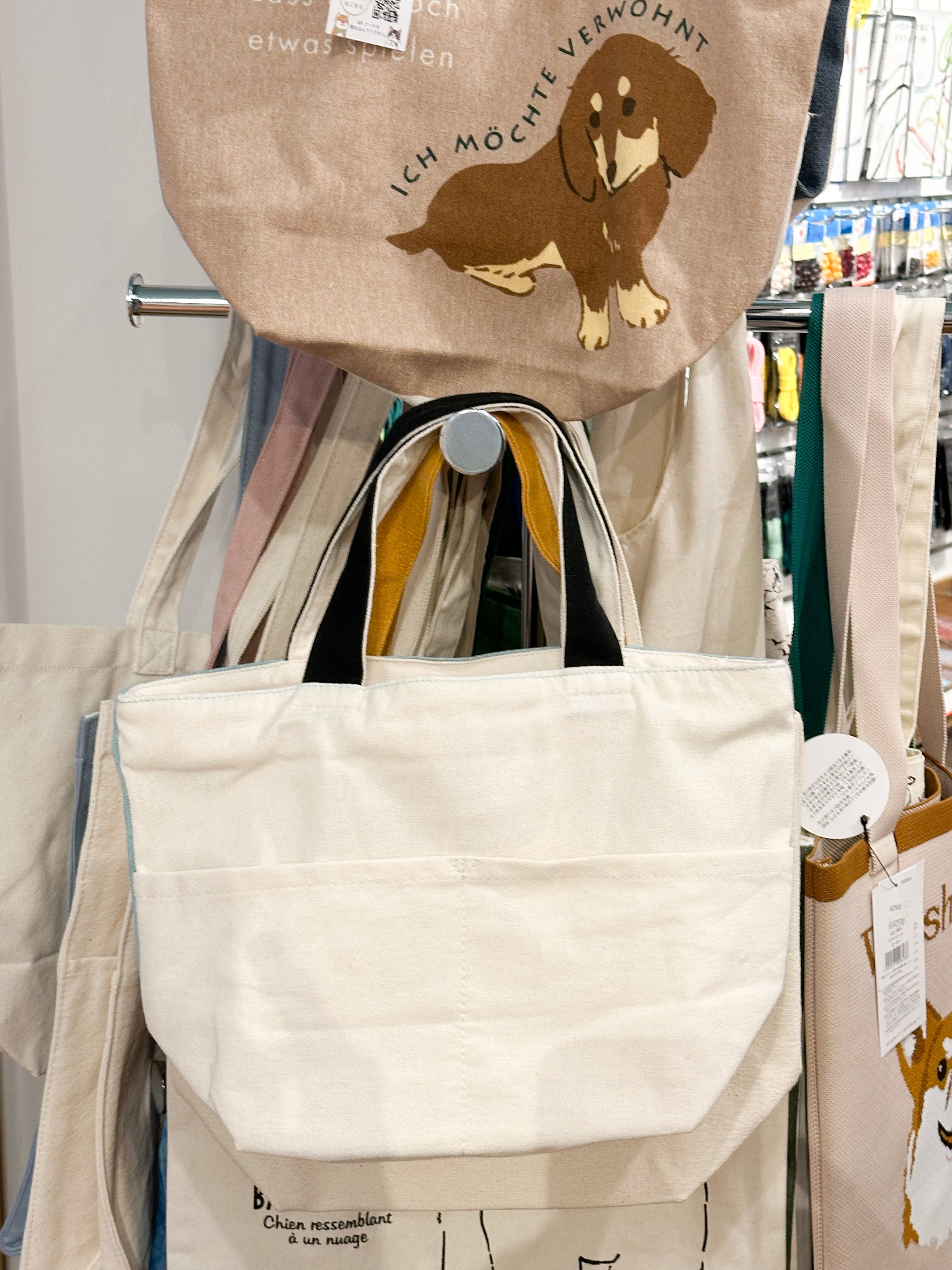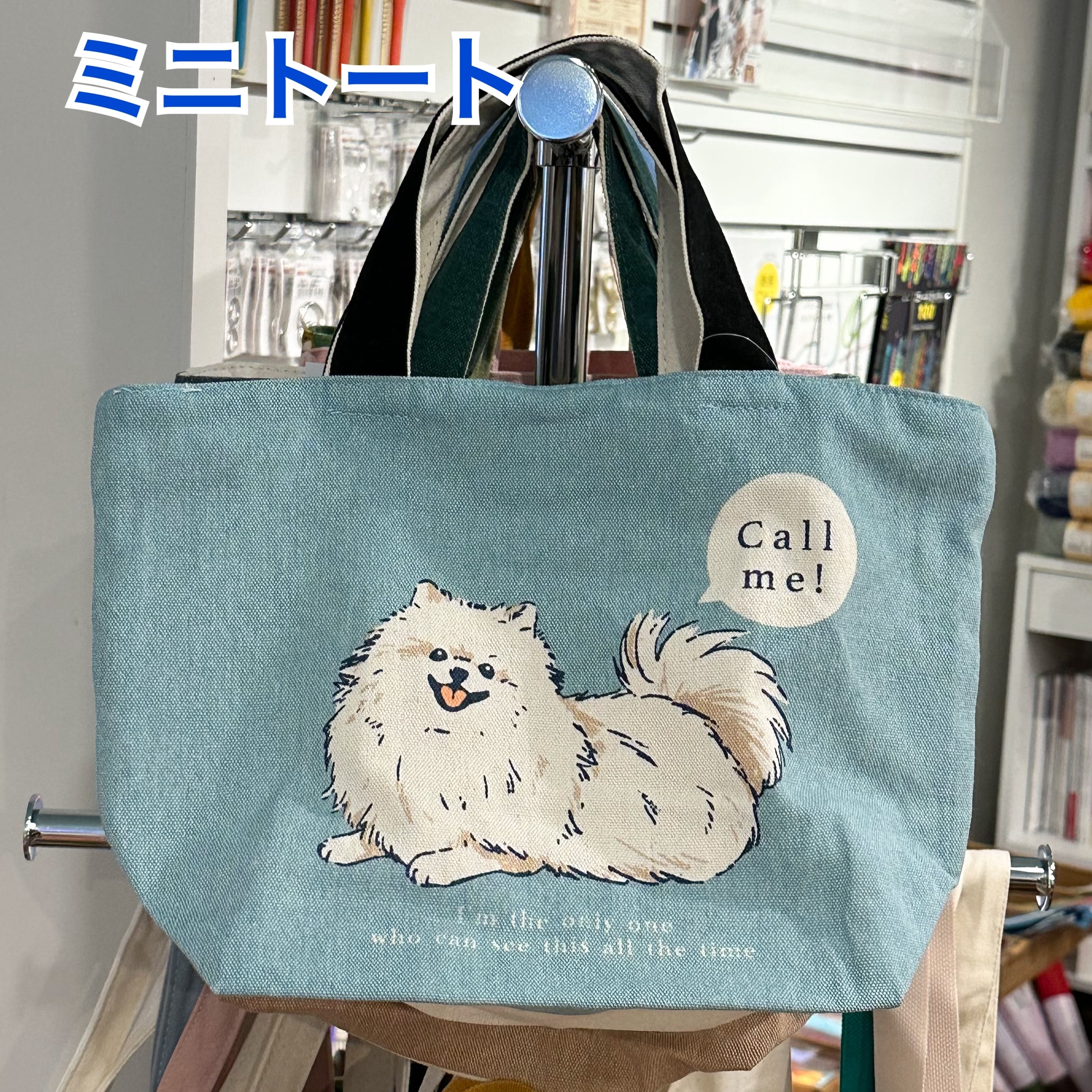ポメラニアンのクッキーがかわいい、キャンバス地のミニトートバッグ。