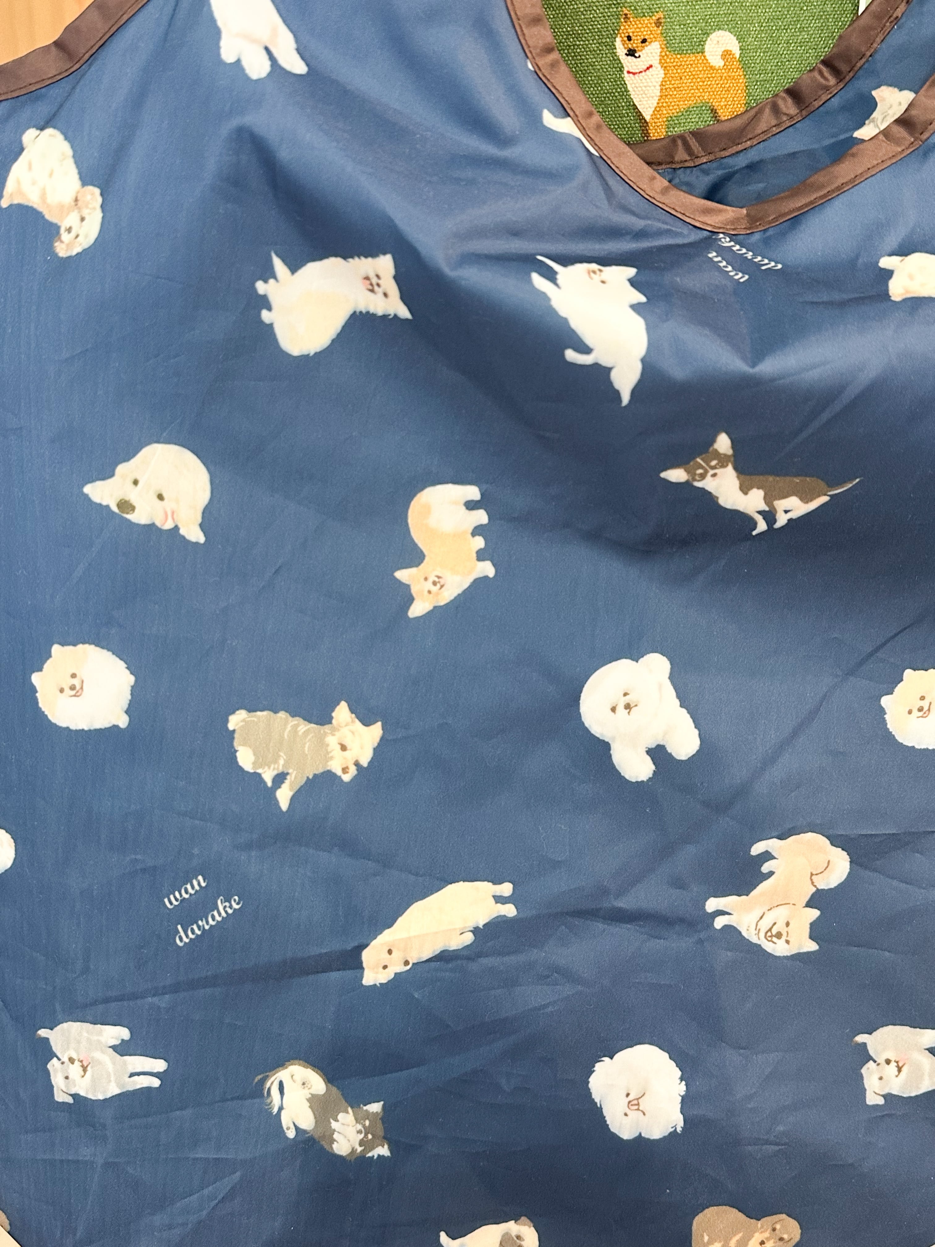わんこが沢山描かれた、軽量の保冷保温エコバッグ。内側は保冷シート&保冷剤ポケット付き。