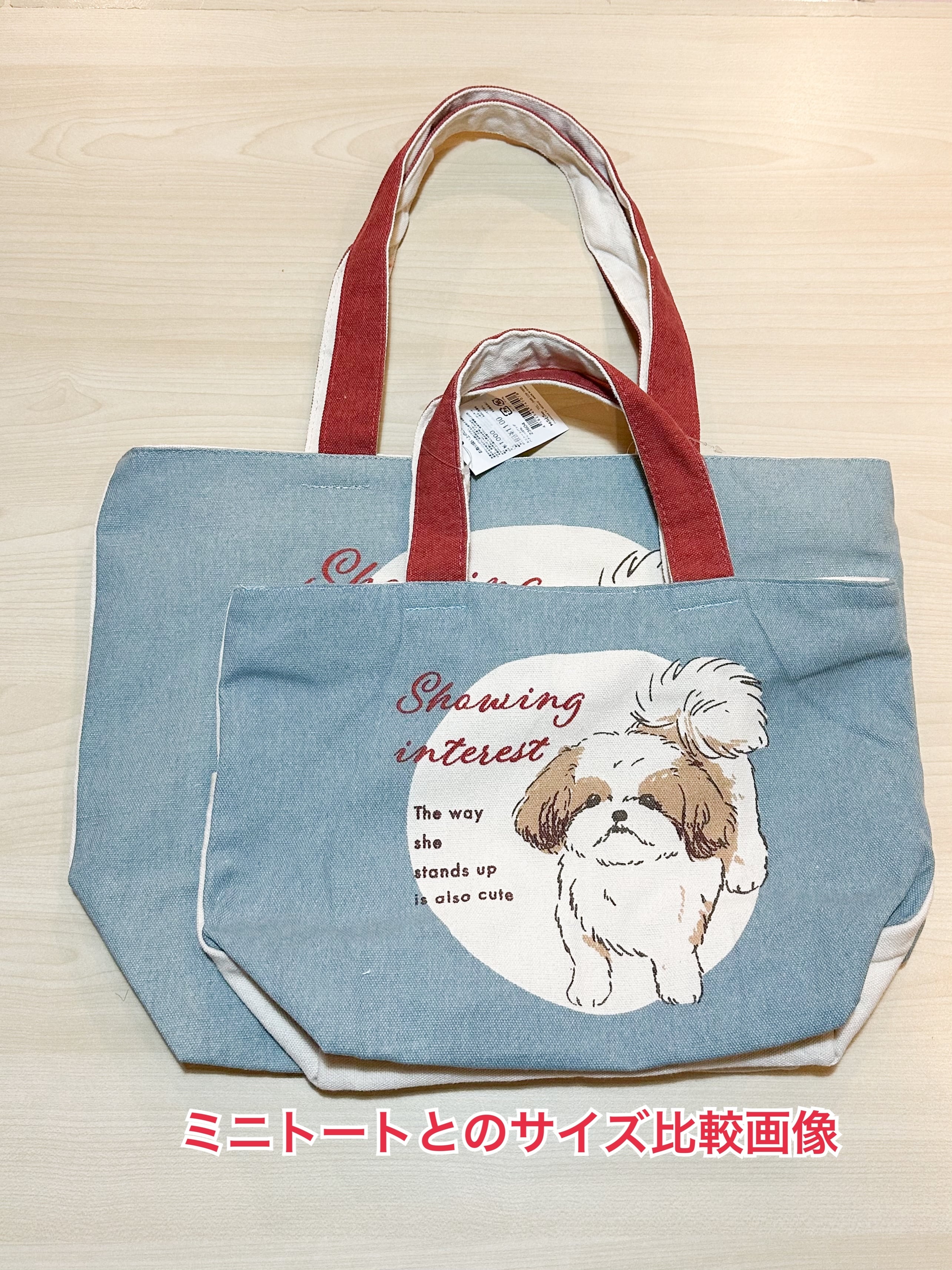 シーズーがかわいい、キャンバス地の横型トートバッグ。