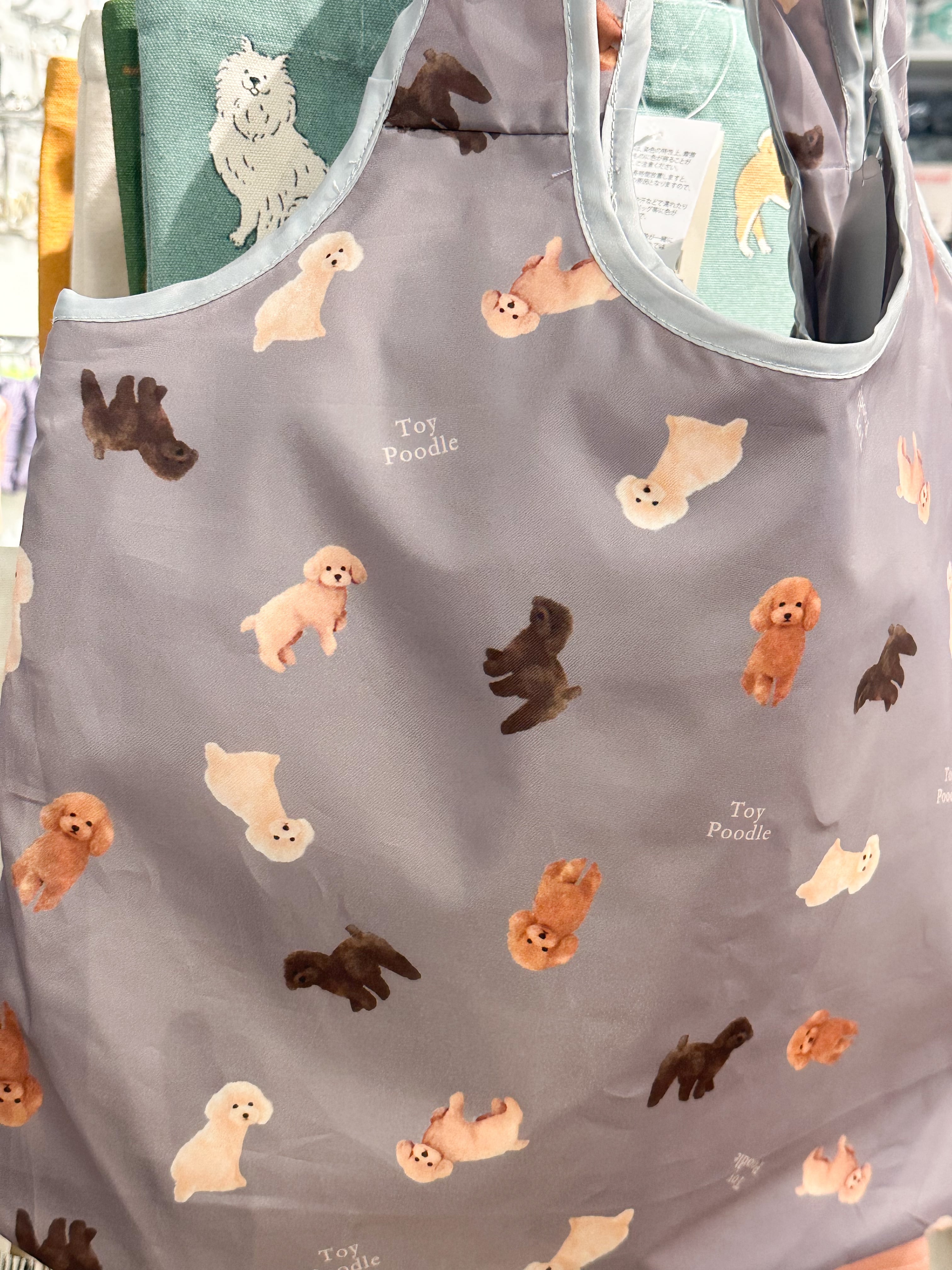 トイプードルが沢山描かれた、軽量の保冷保温エコバッグ。内側は保冷シート&保冷剤ポケット付き。