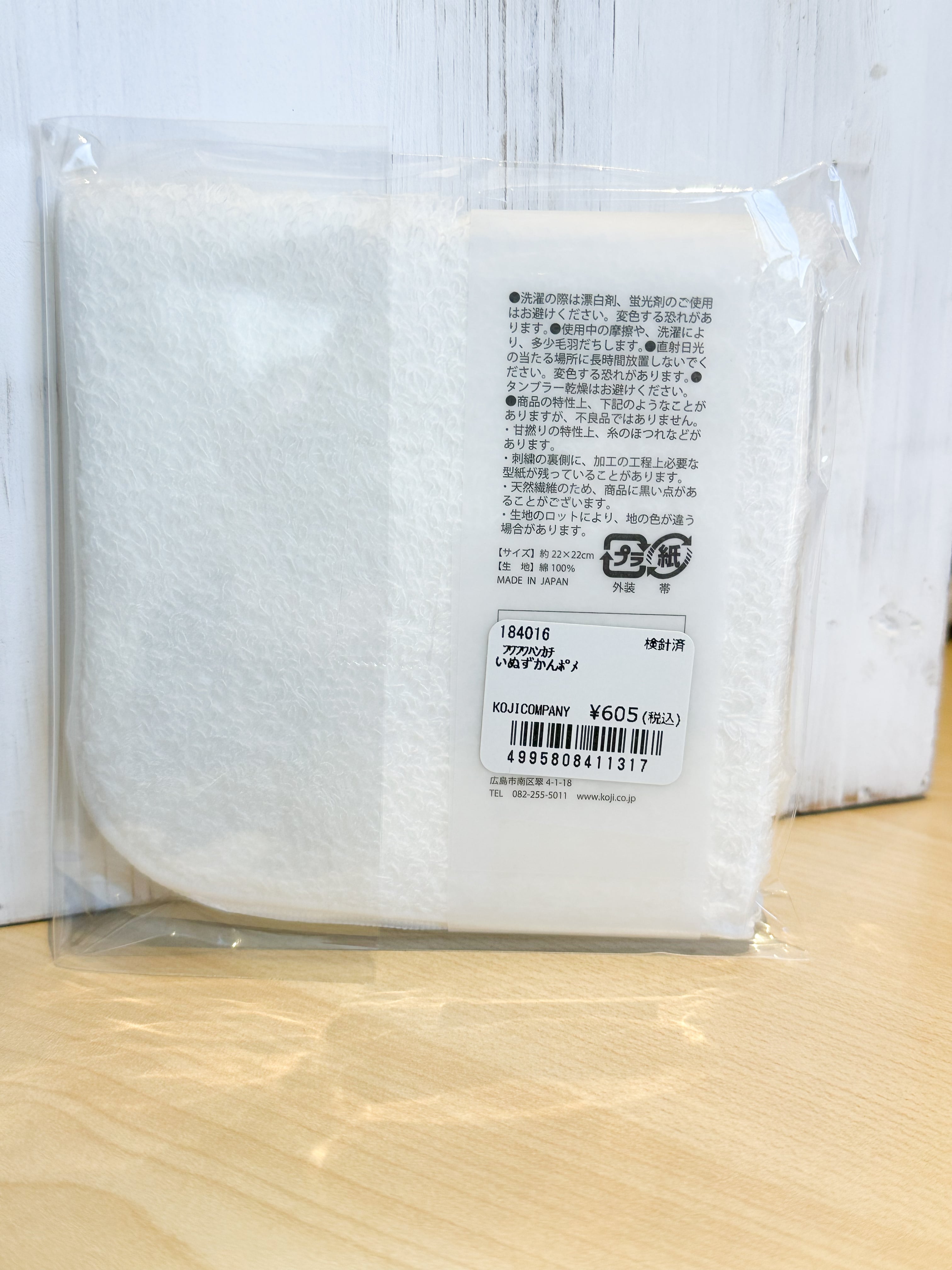 ゆるかわな、わんこの刺繡がワンポイントのタオルハンカチ。
