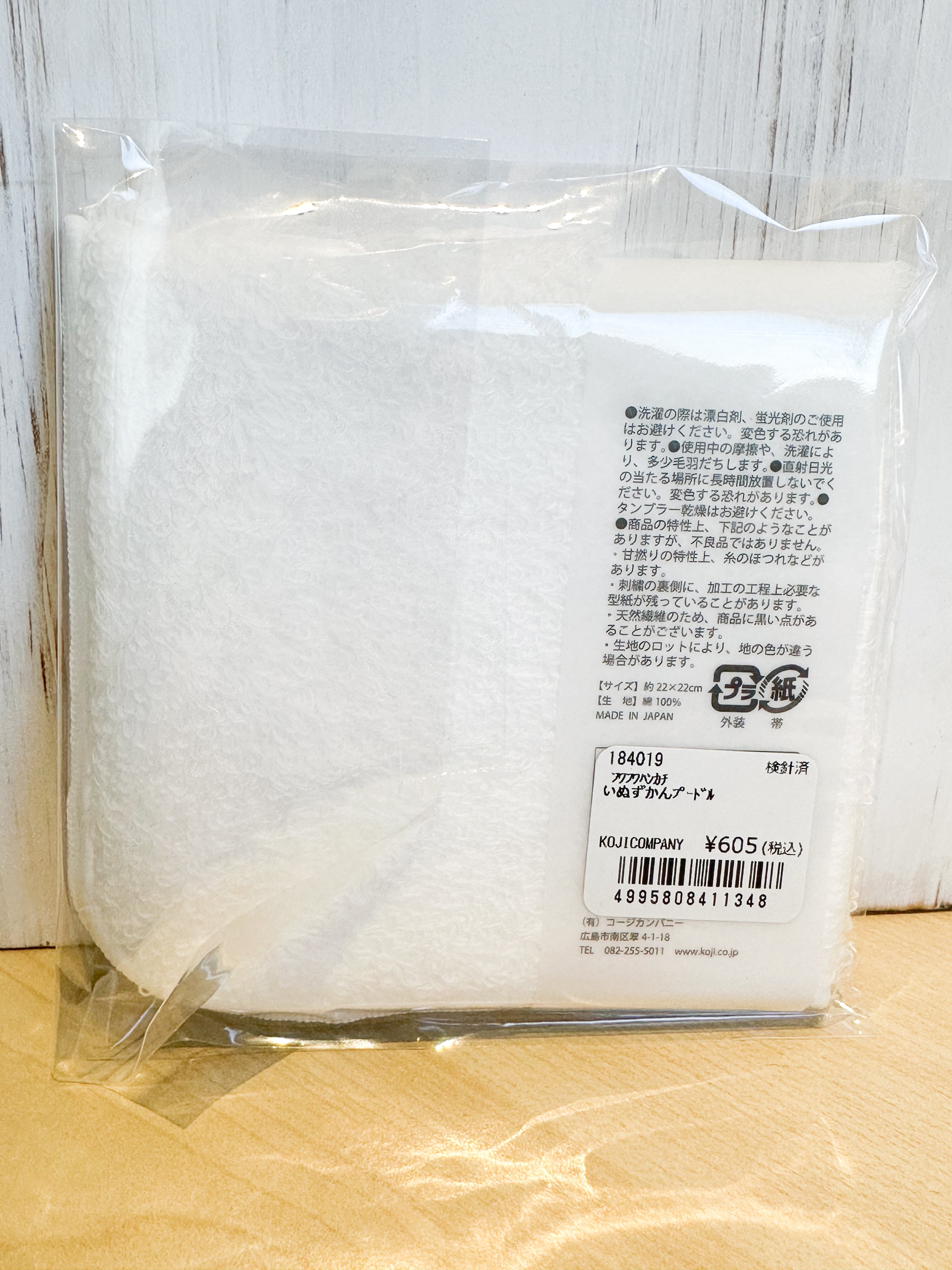 ゆるかわな、わんこの刺繡がワンポイントのタオルハンカチ。