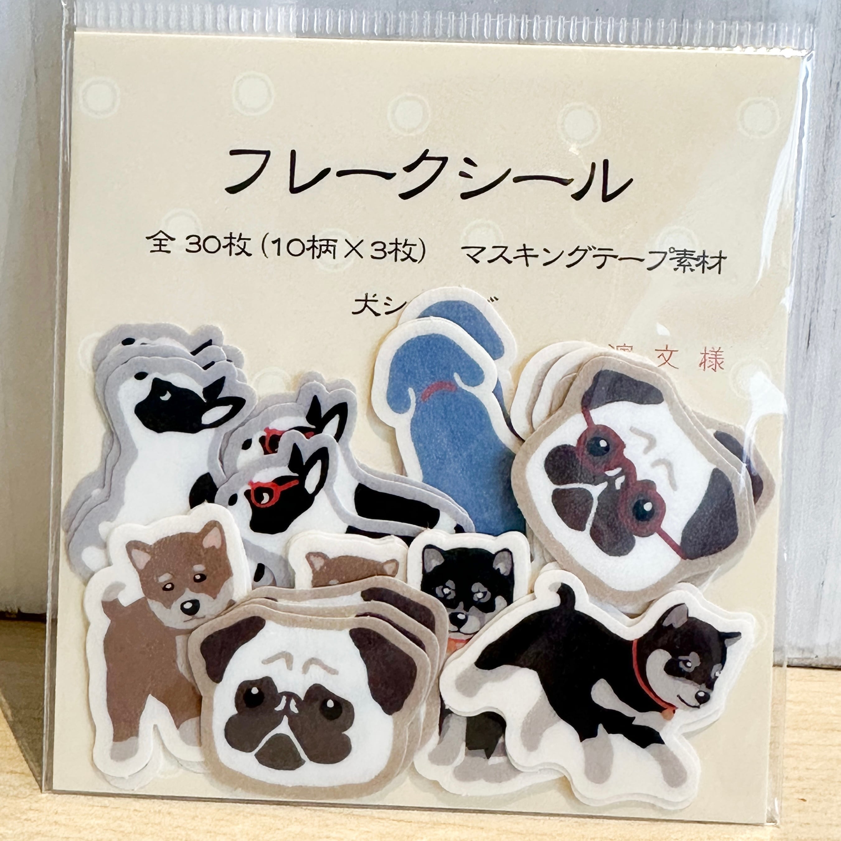 濱文様の人気のわんこたちが、手帳のアレンジやラッピングなどに使える、貼ってはがせる和紙製のフレークシールになりました。