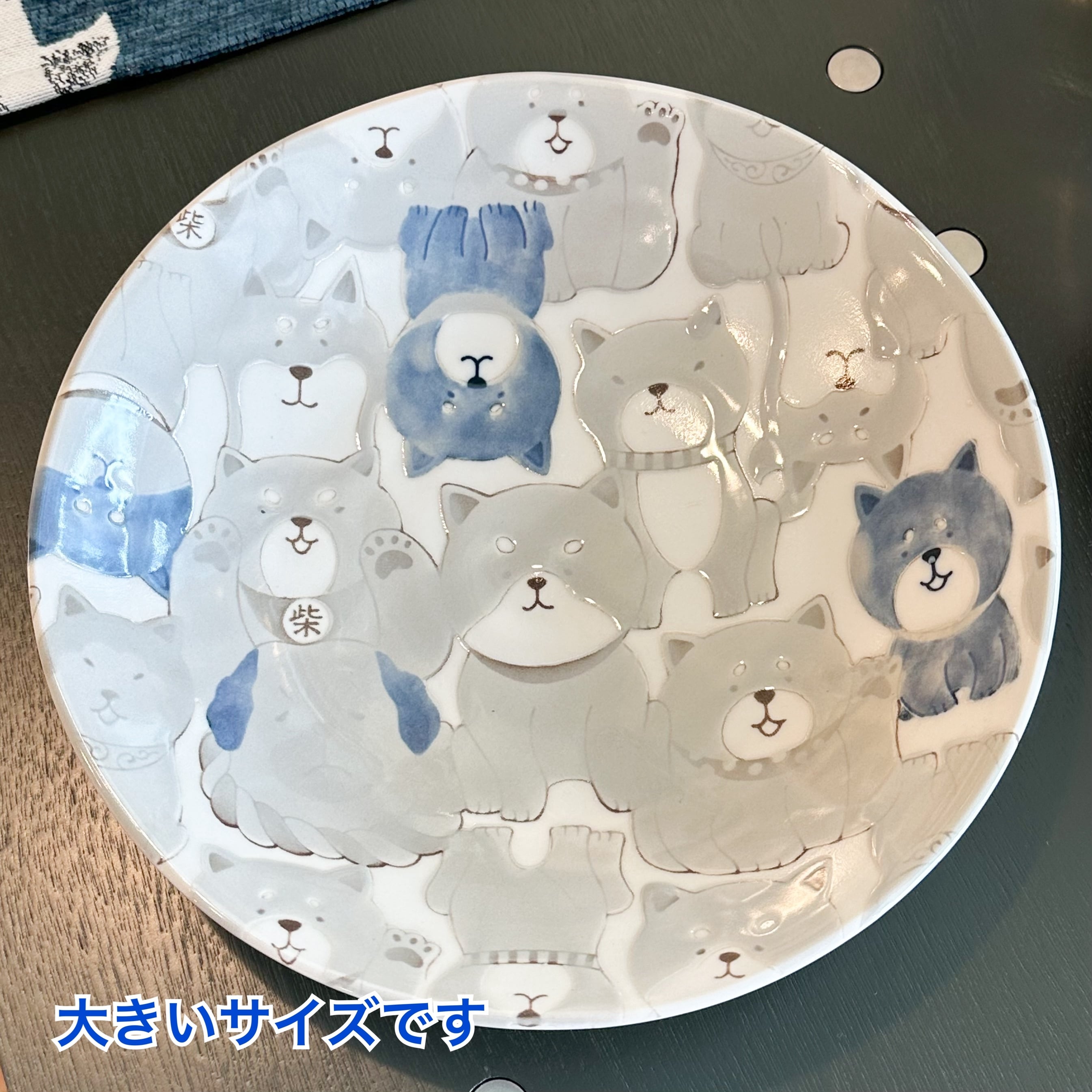 まんまる顔の犬たちがかわいい『わんわん』シリーズは、柴犬たちが大胆に描かれた食器。