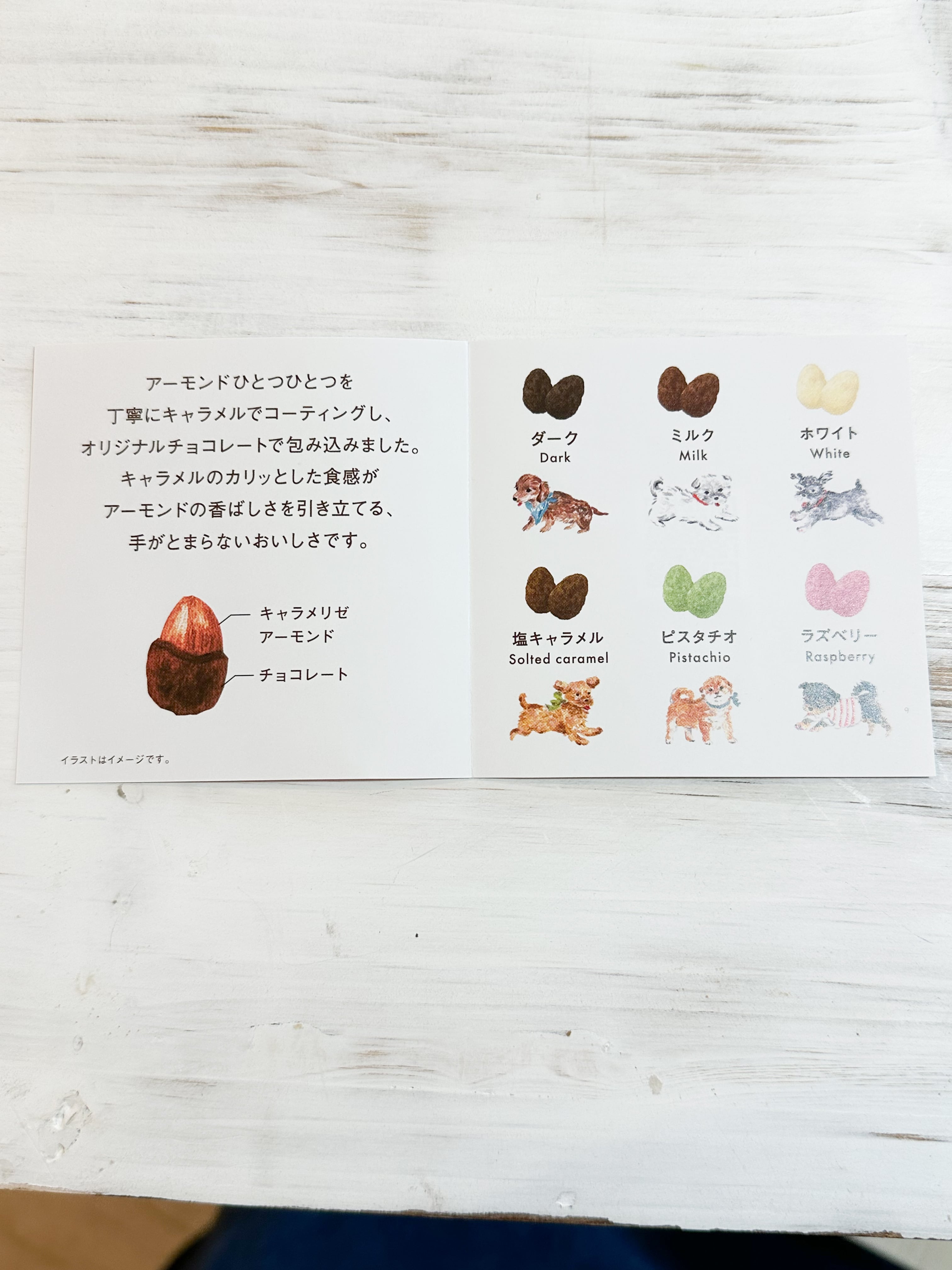 ■原材料:準チョコレート(砂糖、食用植物油脂、ココアパウダー、カカオマス、全粉乳、乳糖、ココアバター、その他)(国内製造)、アーモンドキャラメリゼ(アーモンド、砂糖、その他)/乳化剤、レシチン、香料、(一部に乳成分・アーモンド・大豆・マカダミアナッツを含む)、ピスタチオペースト、クロレラパウダー、キャラメルパウダー、食塩、ラズベリーパウダー