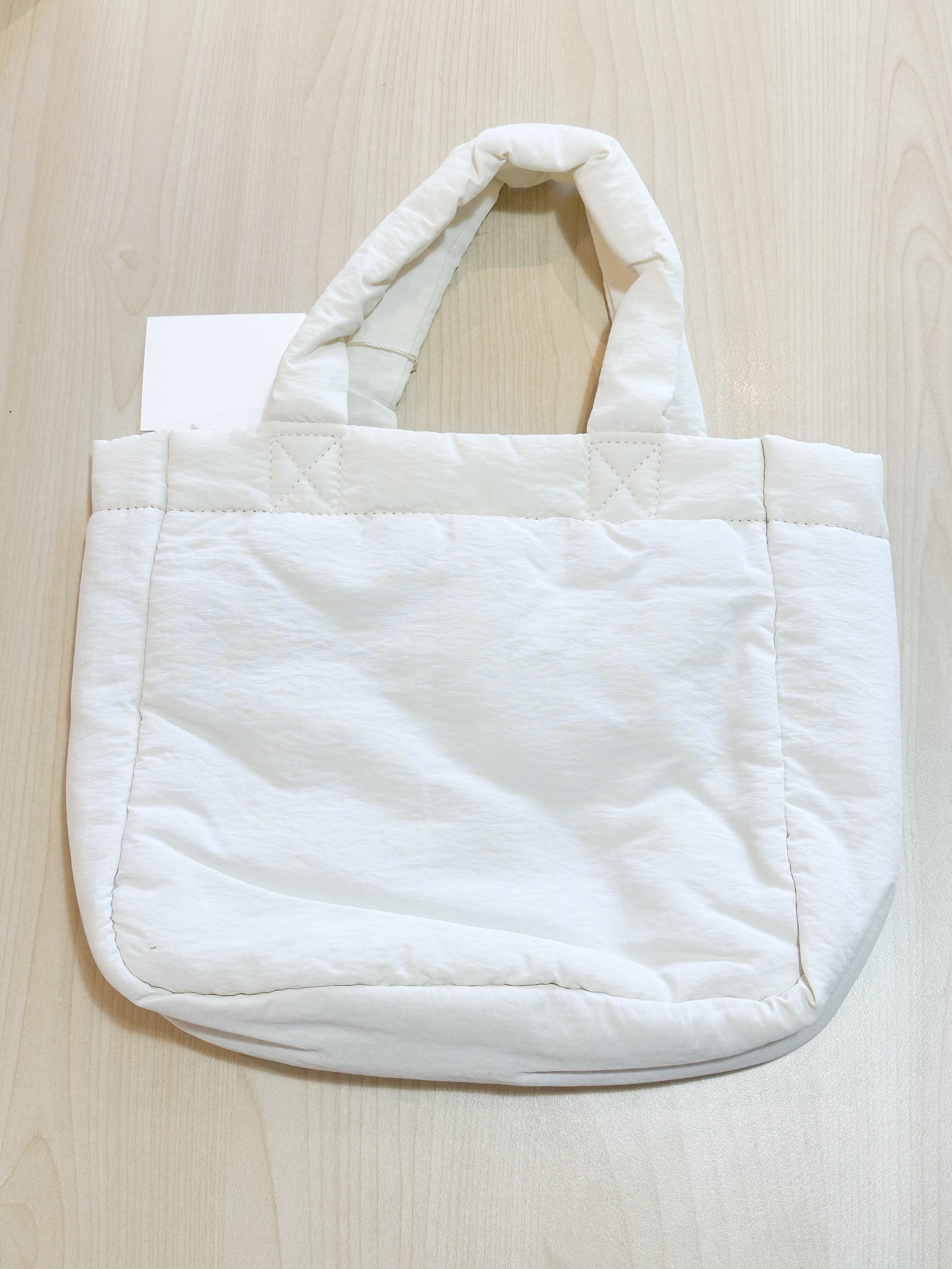綿入りのナイロンの生地に、わんこのリアルな刺繍がかわいいトートバッグ。