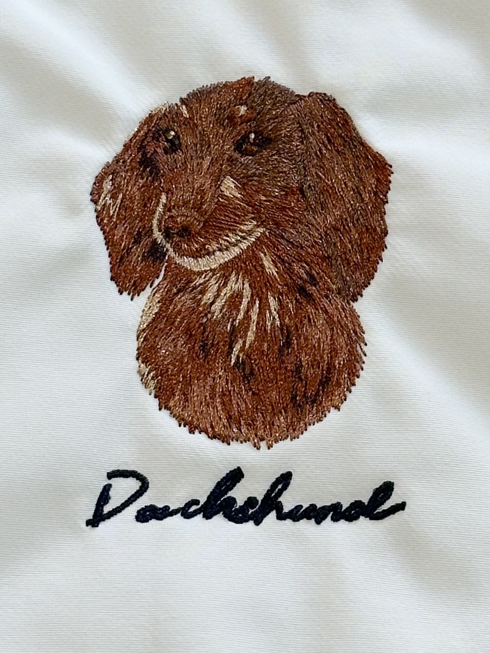 綿入りのナイロンの生地に、わんこのリアルな刺繍がかわいいトートバッグ。