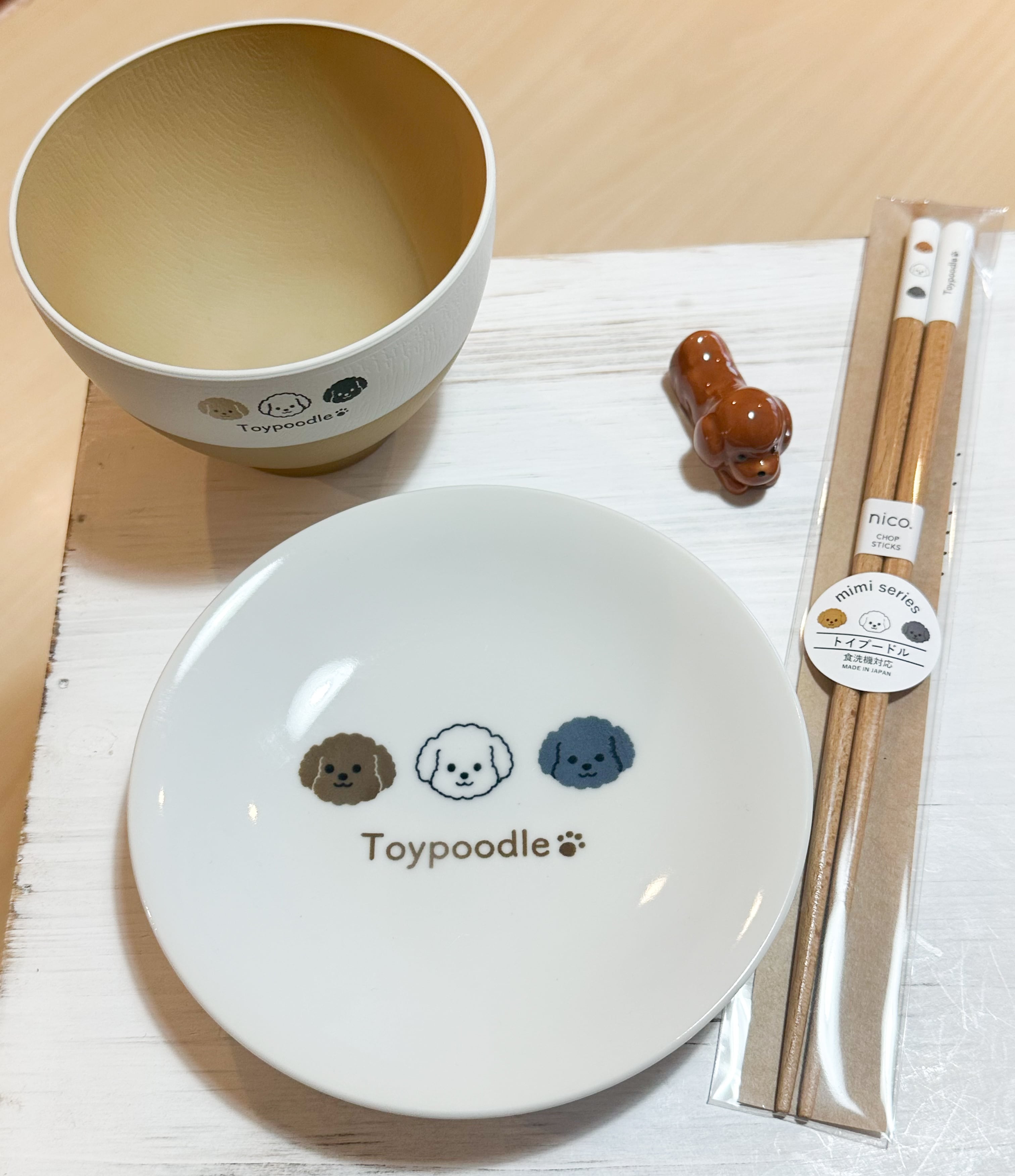 並んだトイプードルがかわいい、食洗機、電子レンジ対応のボウル。
