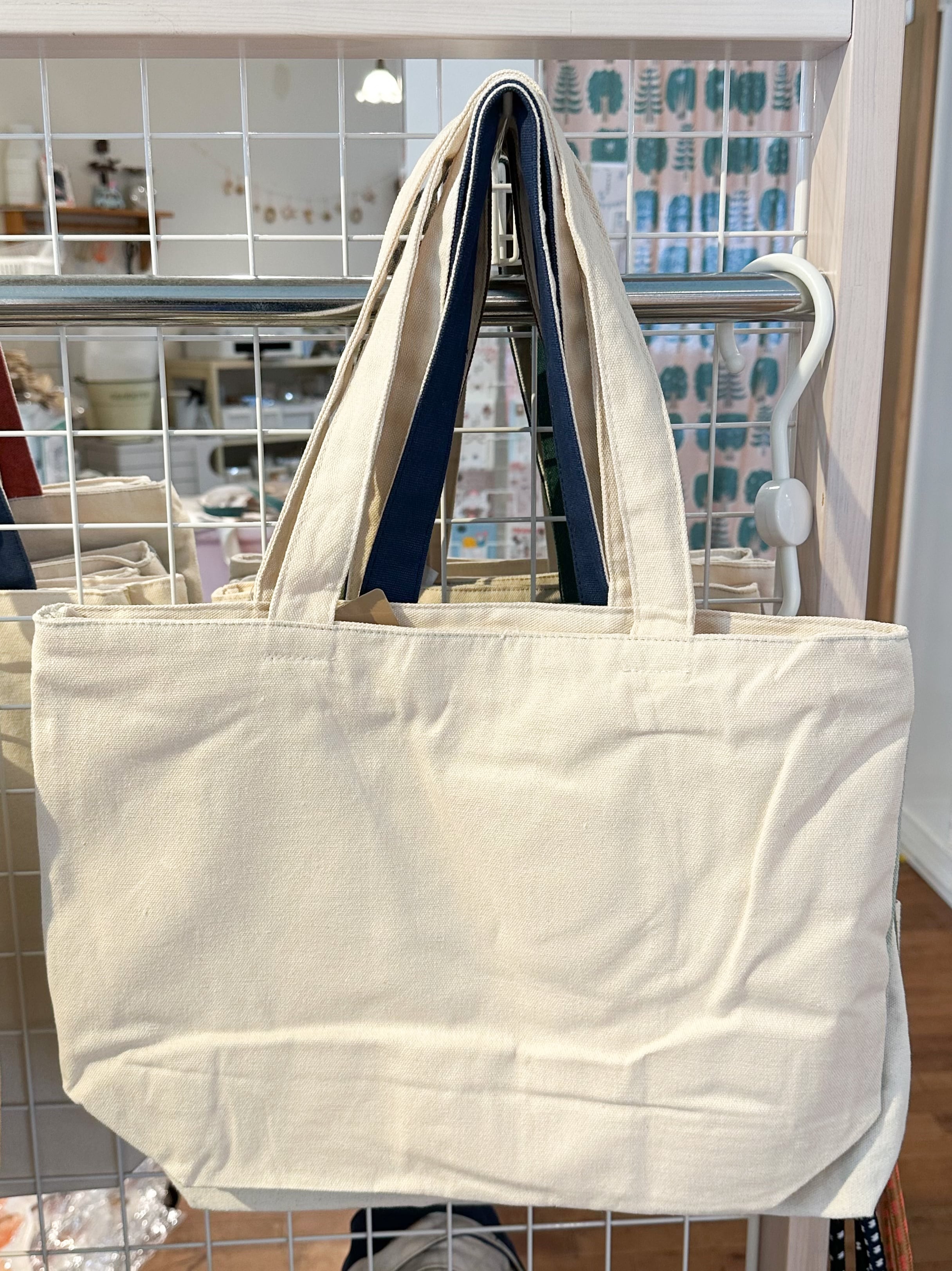 わんこがかわいい、キャンバス地の横型トートバッグ。