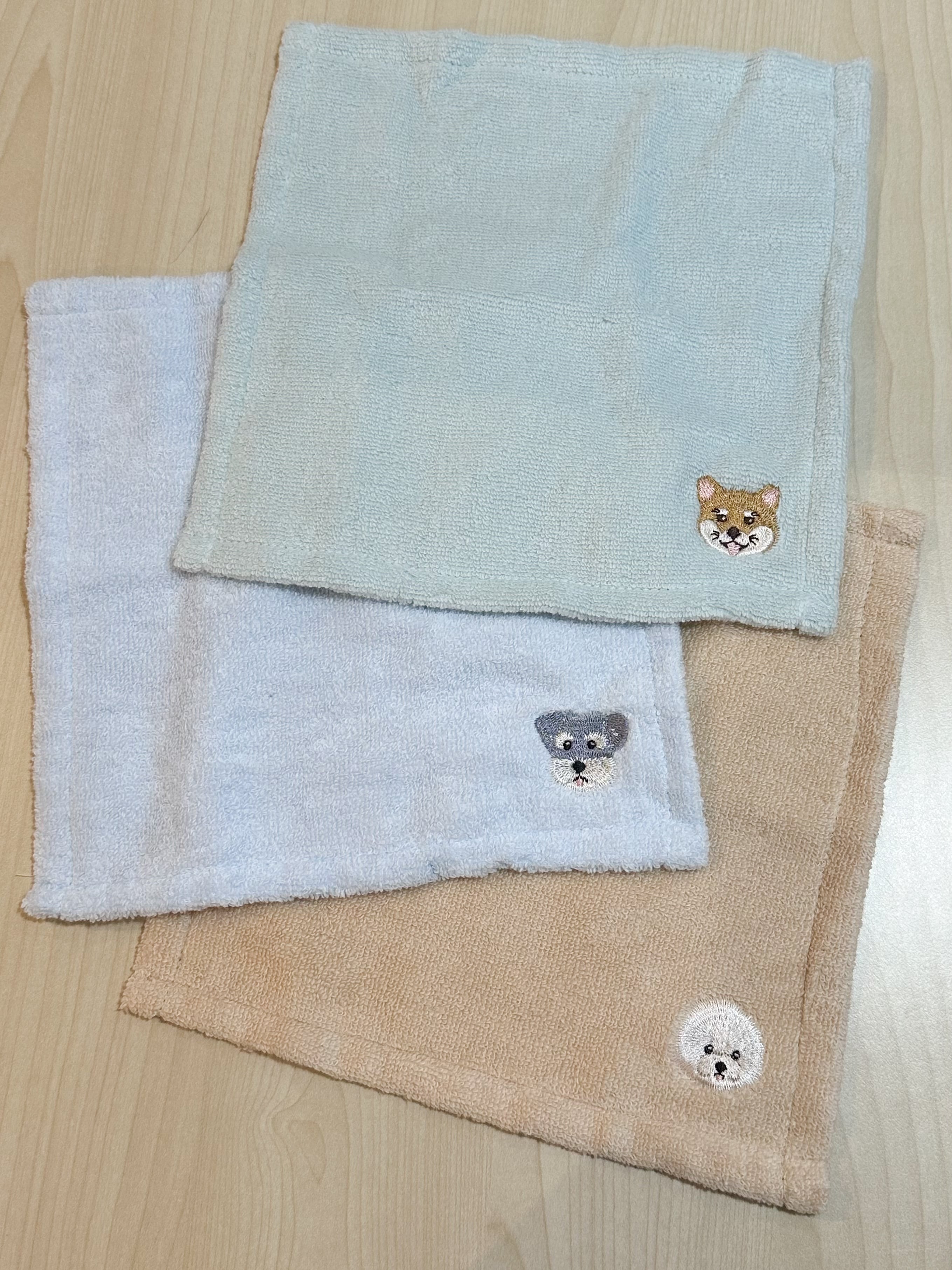 ワンポイントの刺繍がかわいい、綿100%の肉厚ハンカチです。