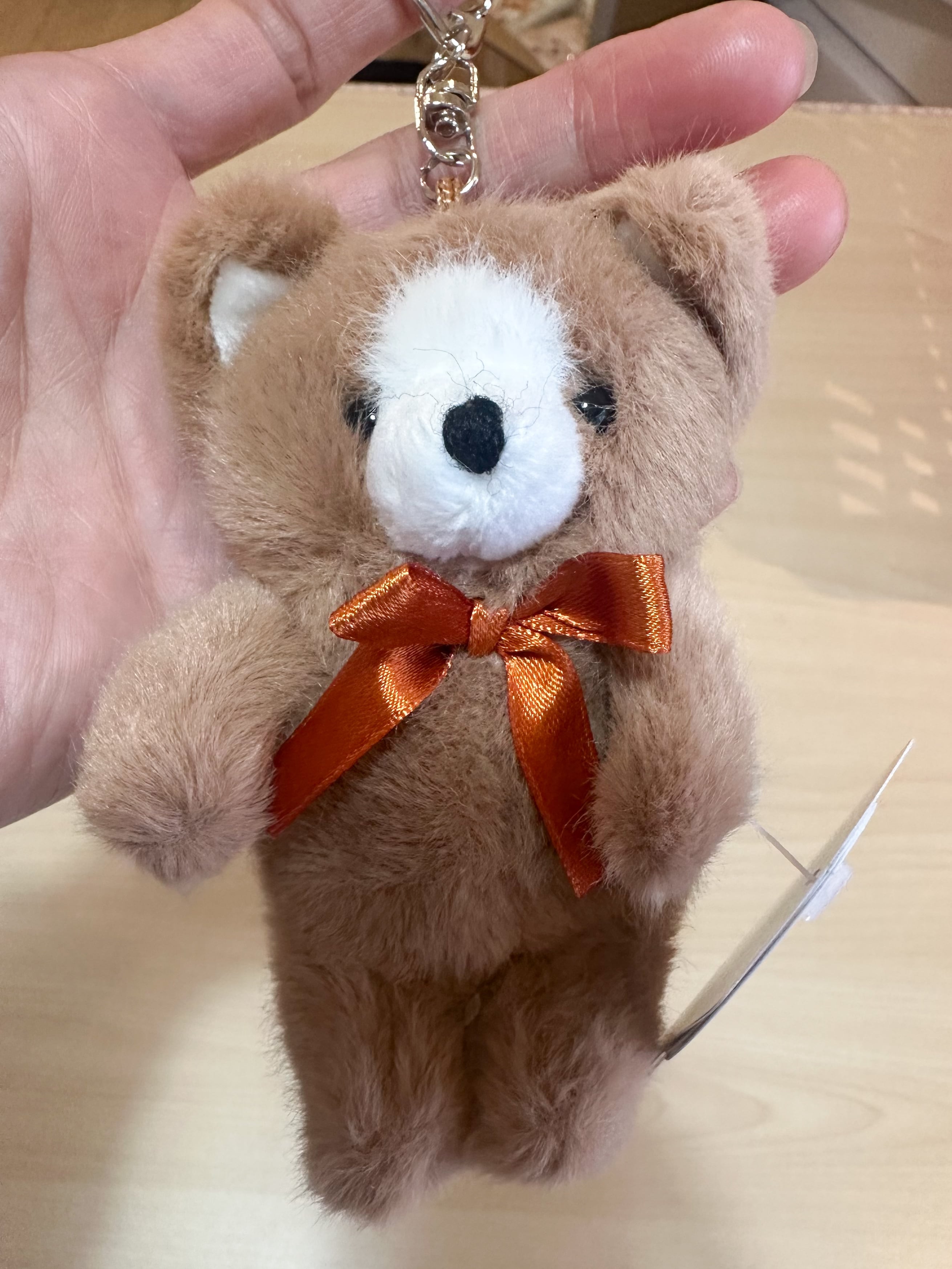 ナスカン付きで、バッグなどに下げて持ち歩ける、ふわふわのコーギーのぬいぐるみ。