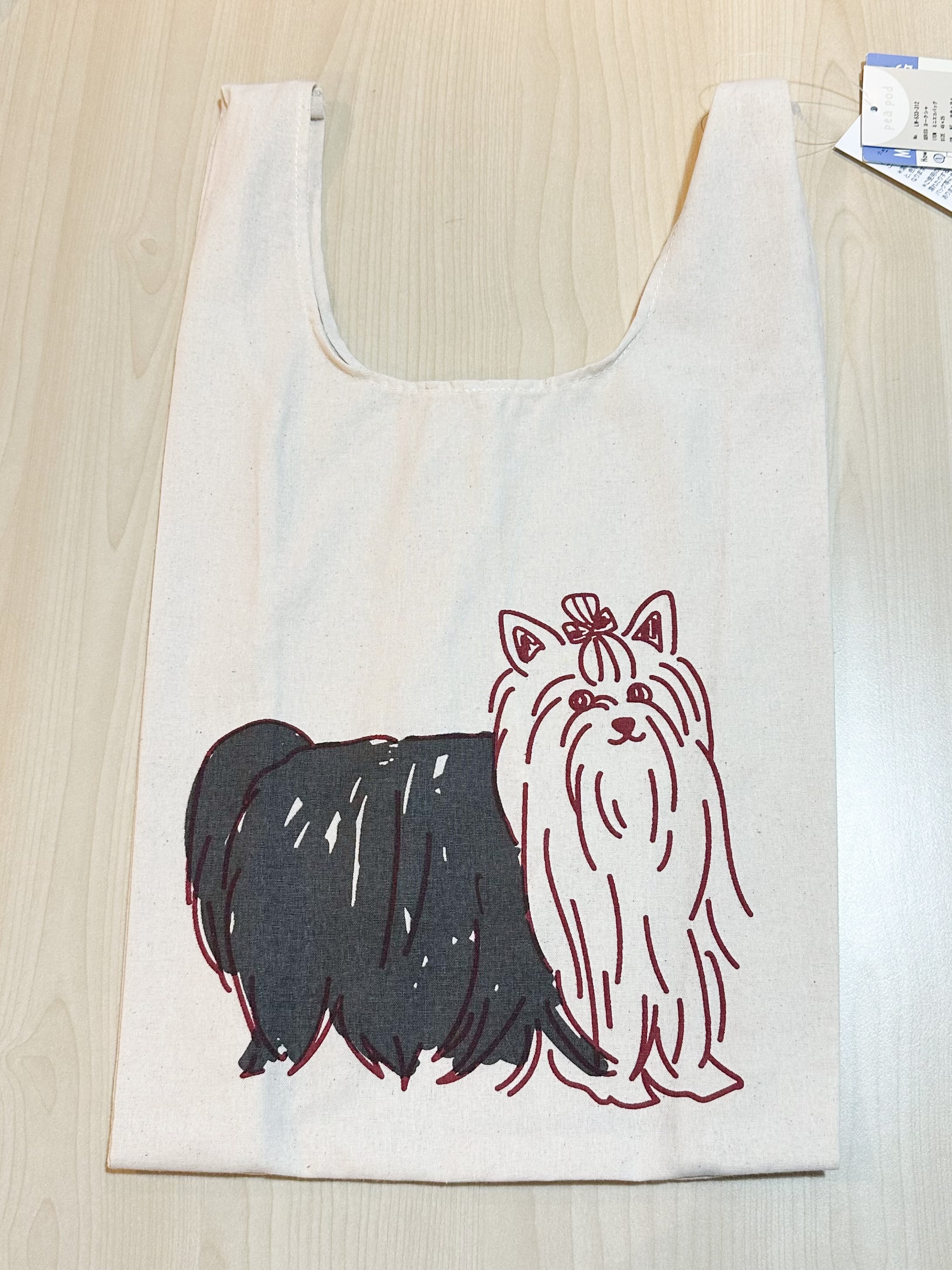 ヨーキーがかわいいミニエコバッグ。綿100%なので丸洗いできます。