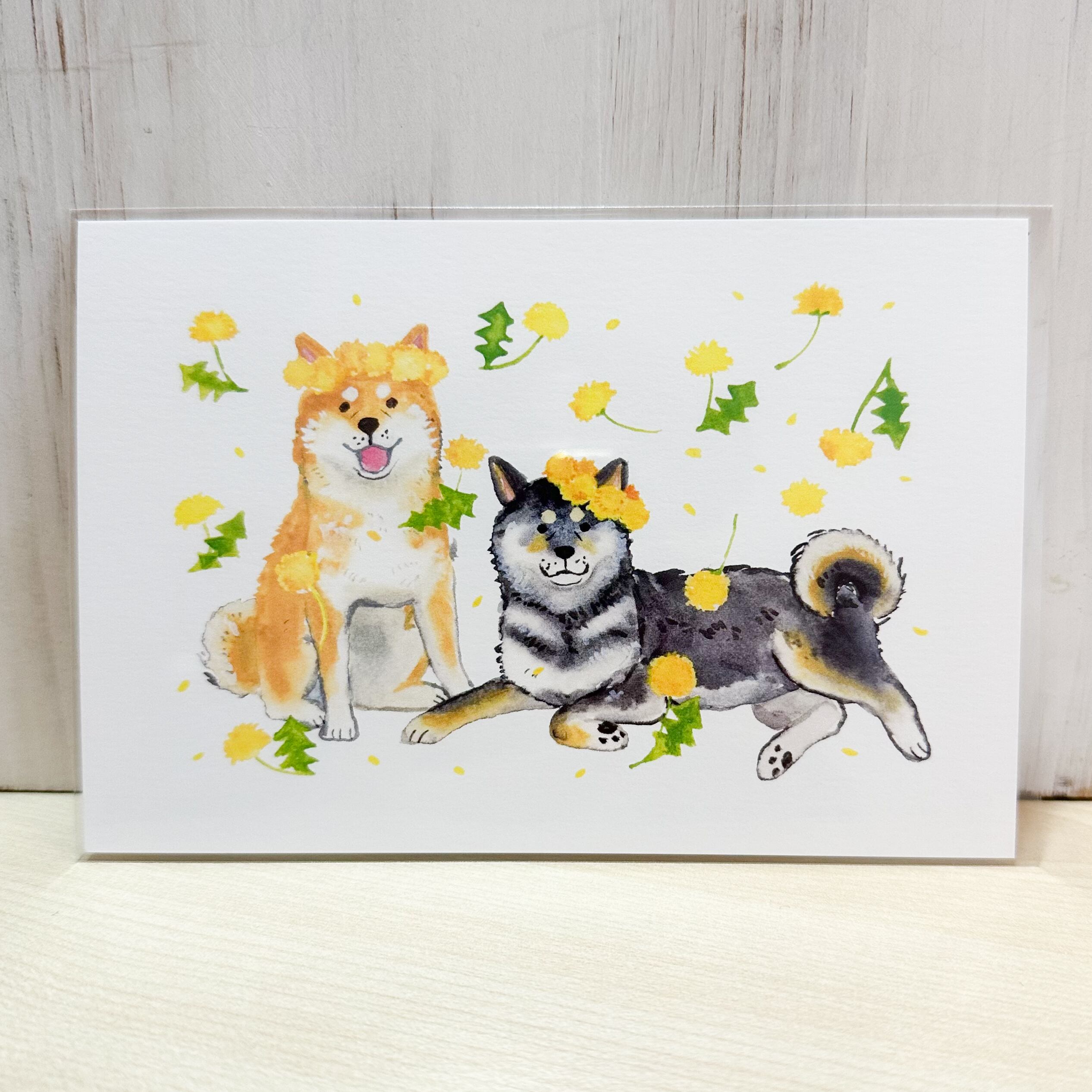 柴犬の水彩画でおなじみのイラストレーター、村田夏佳さんが描く、春と柴犬の やさしくて温かな世界のポストカードシリーズ。