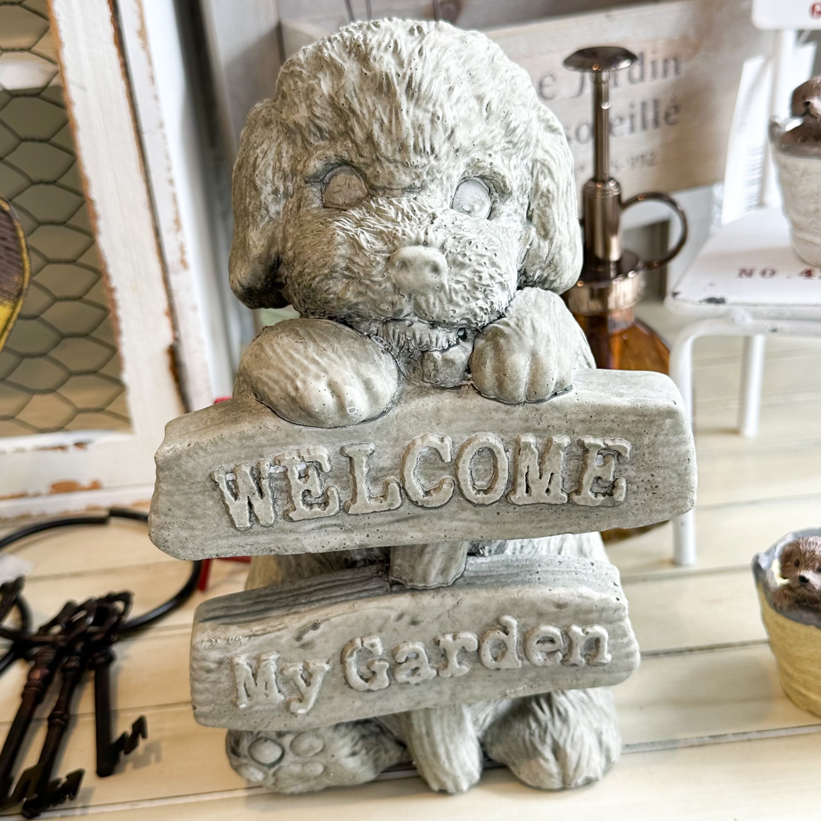 ちょっとアンティーク調でオシャレなセメントのわんこのオブジェ。