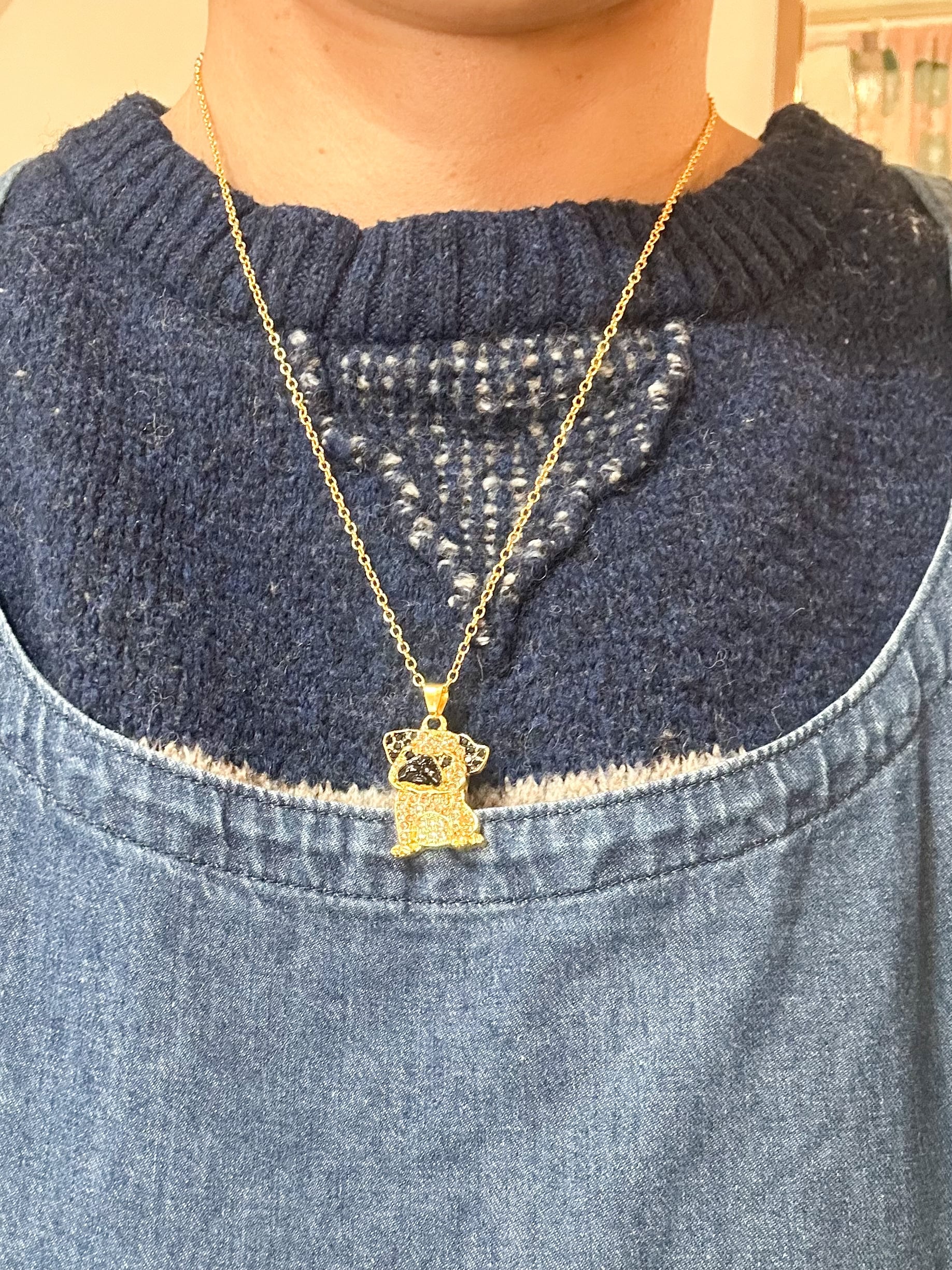 キラキラしたわんこのモチーフがかわいいネックレス。