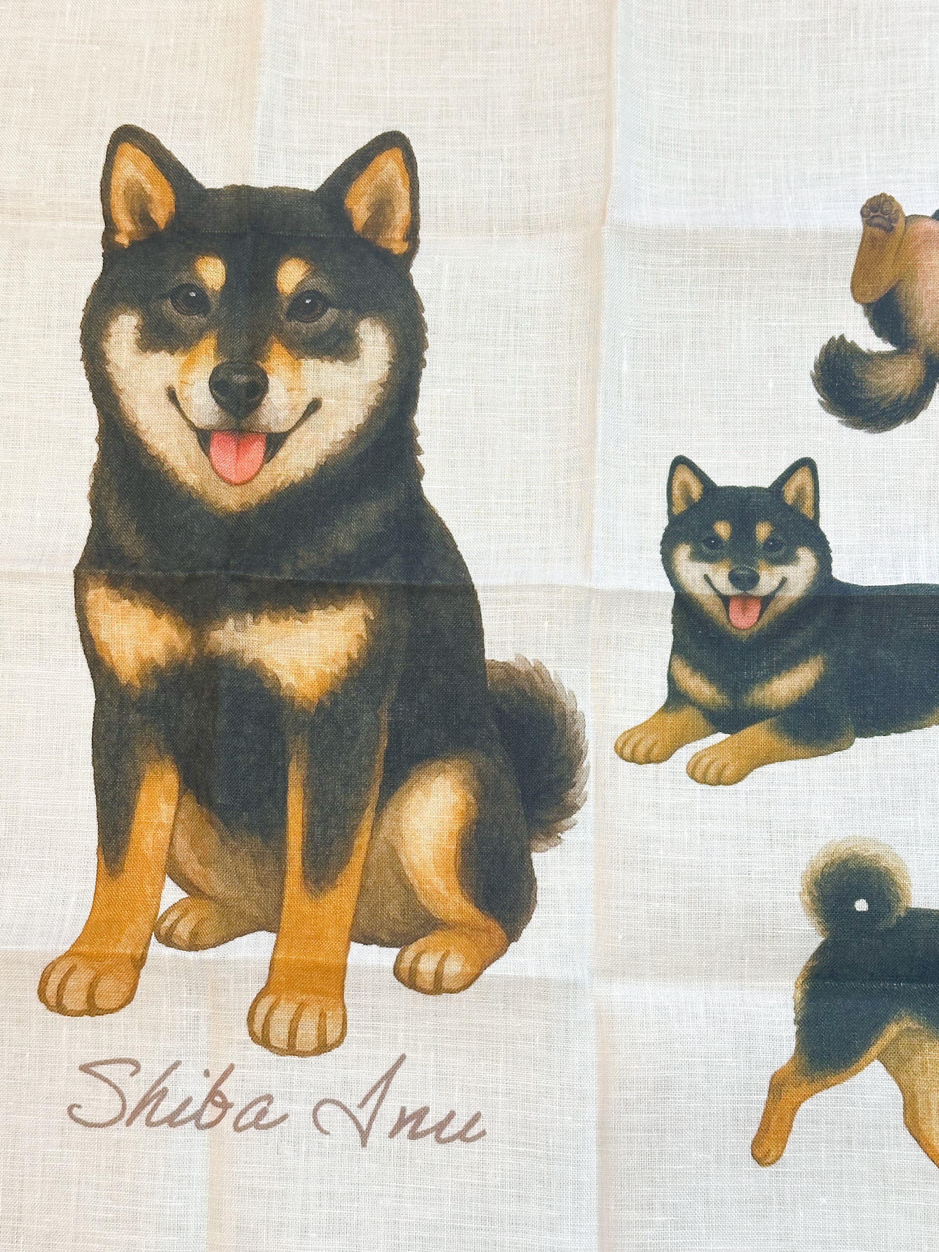 リネン100%大きめハンカチ 黒柴