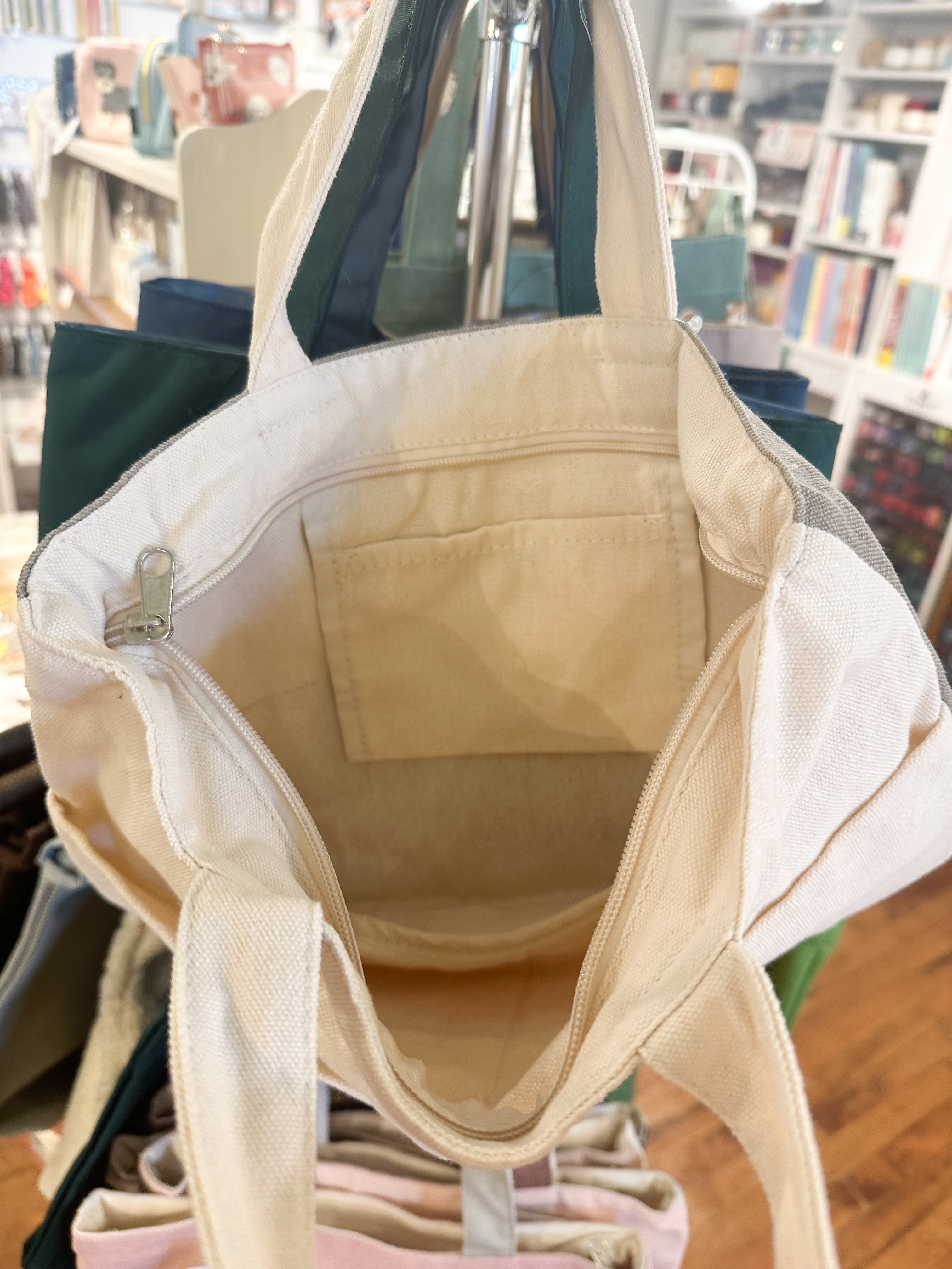 B5サイズが入る便利なサイズ感に、広めのマチでお弁当箱や、500mlペットボトルが立てたままでも入ります。