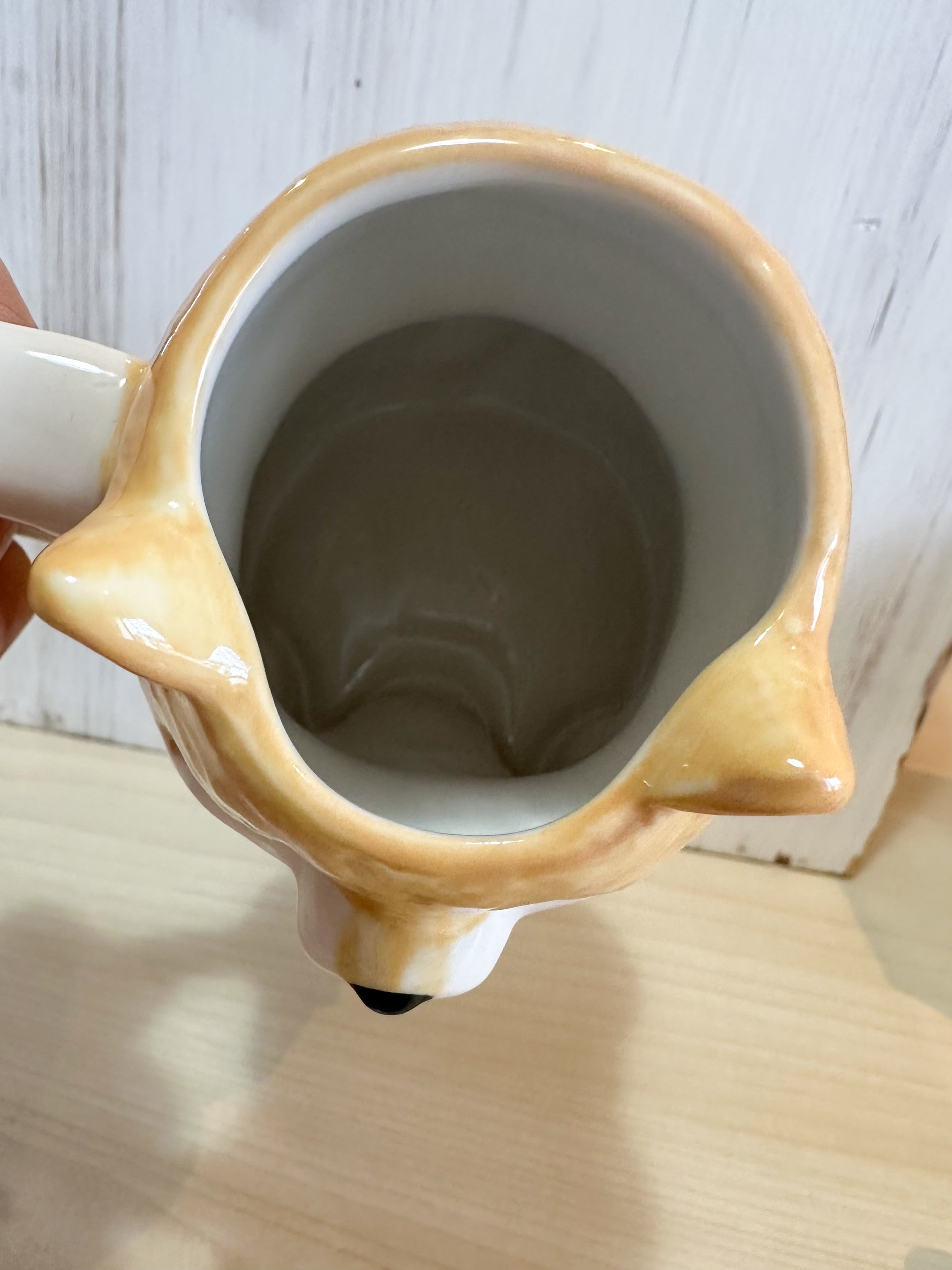 A cute dog-shaped mug that makes you smile when your eyes meet.