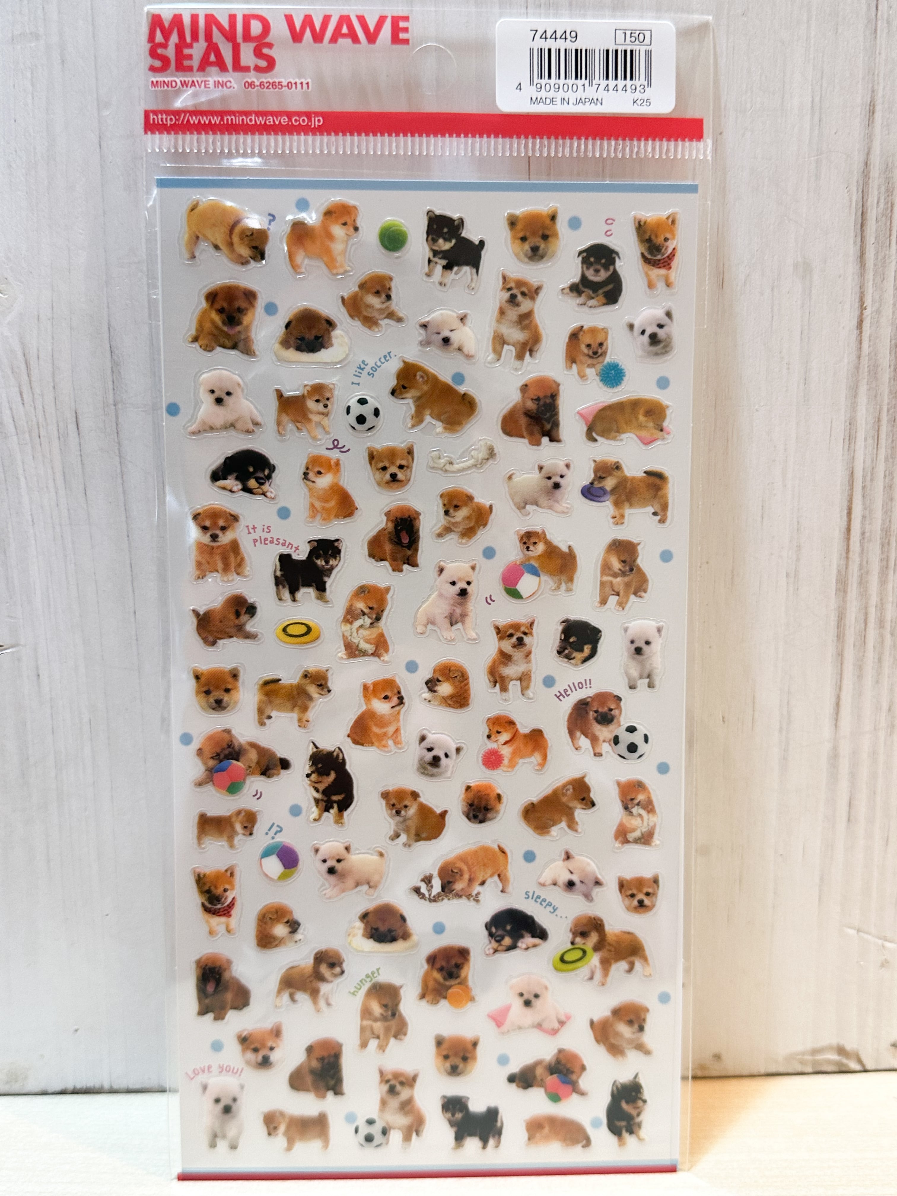 A cute petit sticker of the Shiba Inu puppies in the photo.