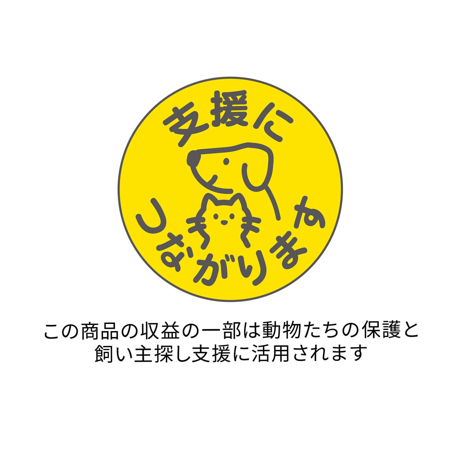 商品の購入が支援につながります。動物たちの保護と飼い主探し支援に活用されます。
