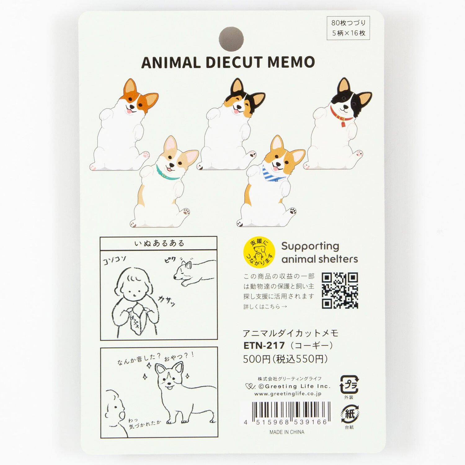 アニマルダイカットメモ へそ天コーギー