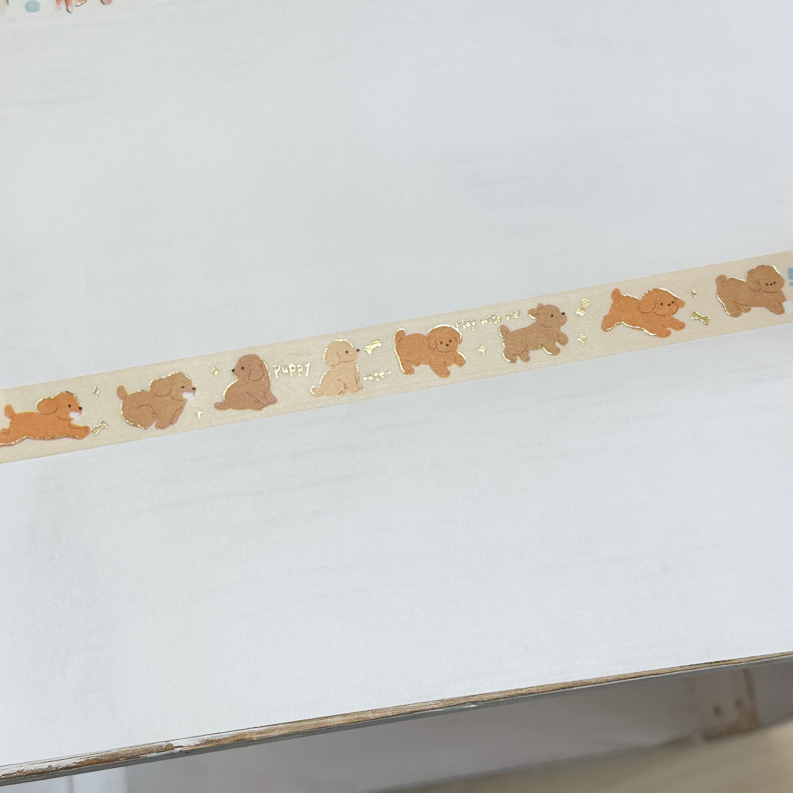 箔押しタイプのかわいいパピーのマスキングテープ。